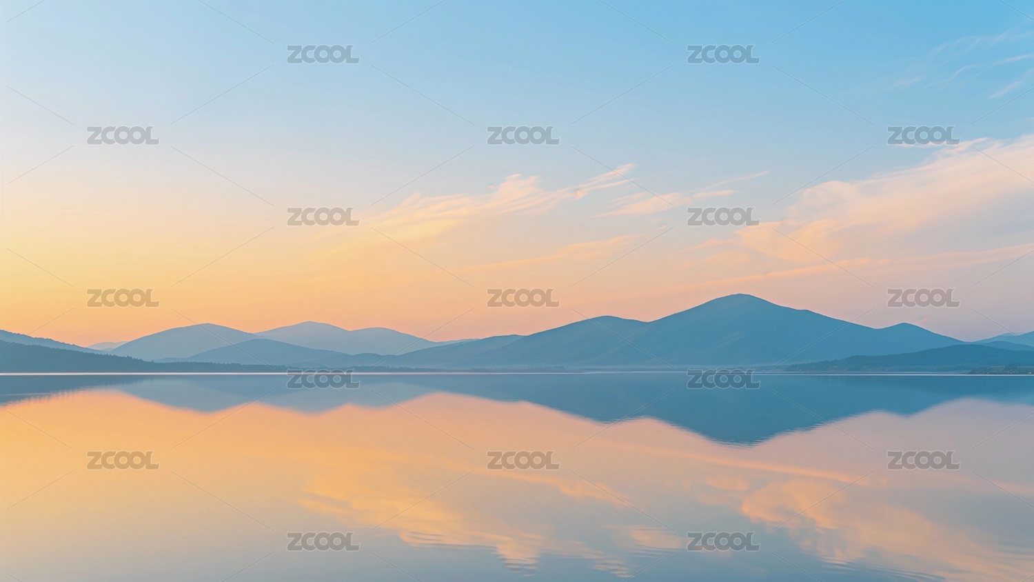紫色,背景,橙色,深蓝,天空,渐变,湖面,山脉,湖水,宁静