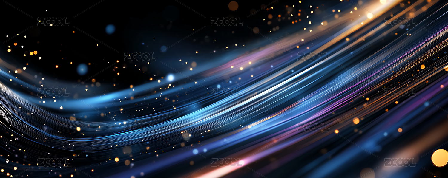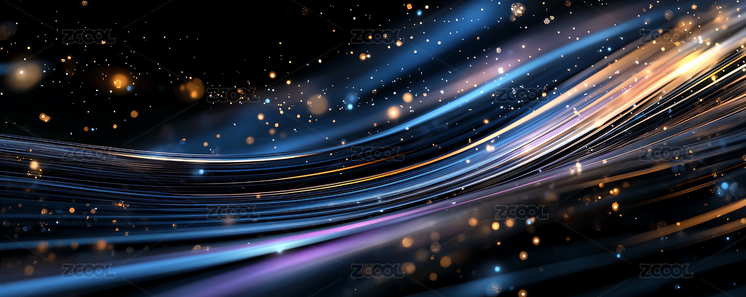 蓝色,夜空,曲线,金色,黄色,光带,点,深邃,蜿蜒,星星