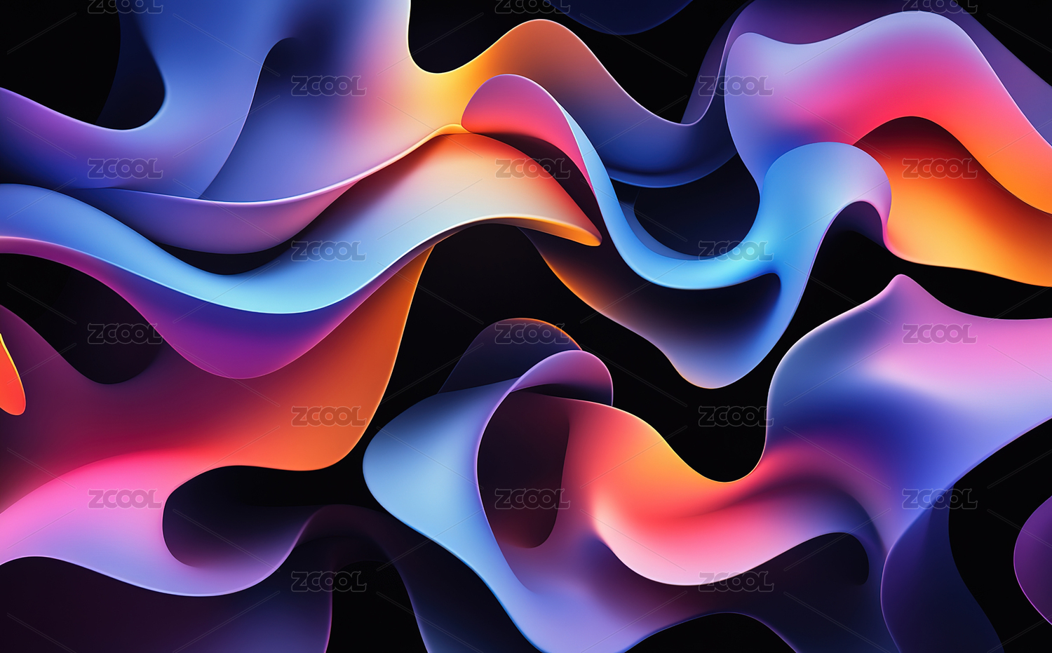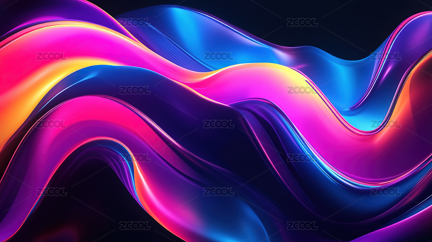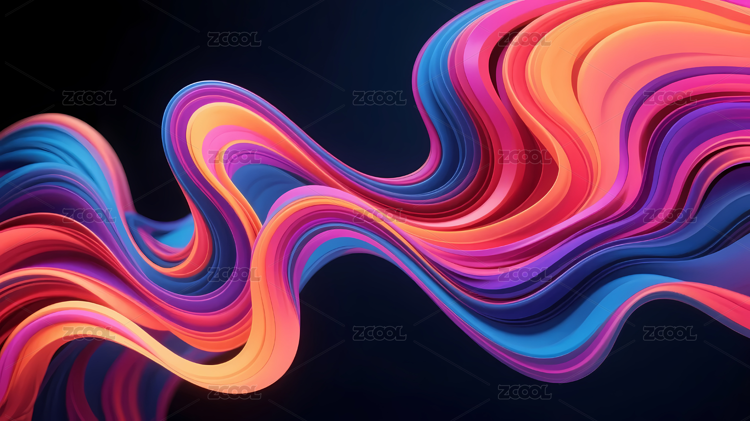紫粉蓝波浪线深色背景