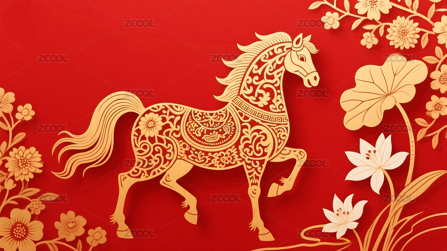 背景,红色,喜庆,装饰,图案,马,金色,云,传统,文化
