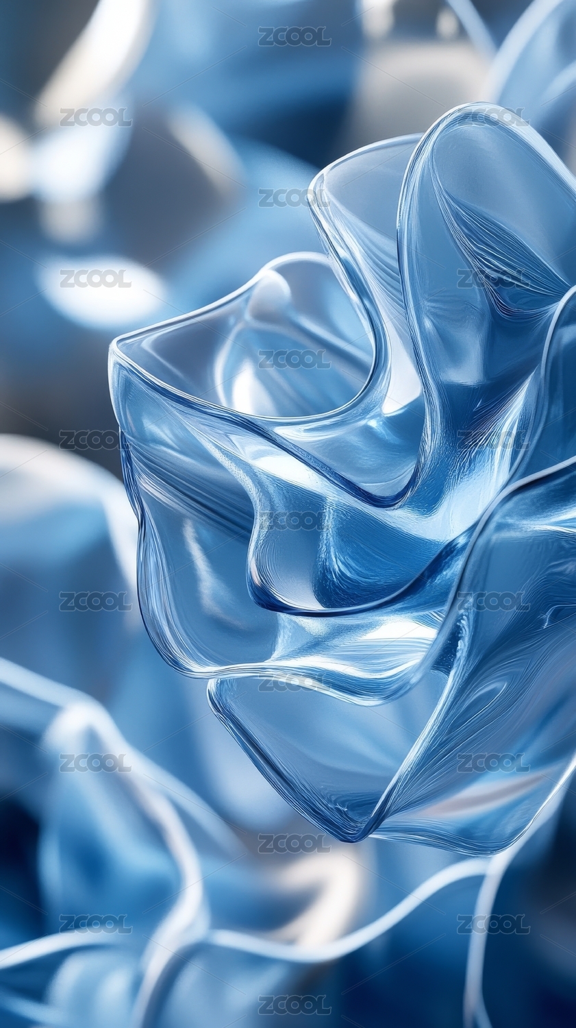 蓝色透明波浪形结构特写