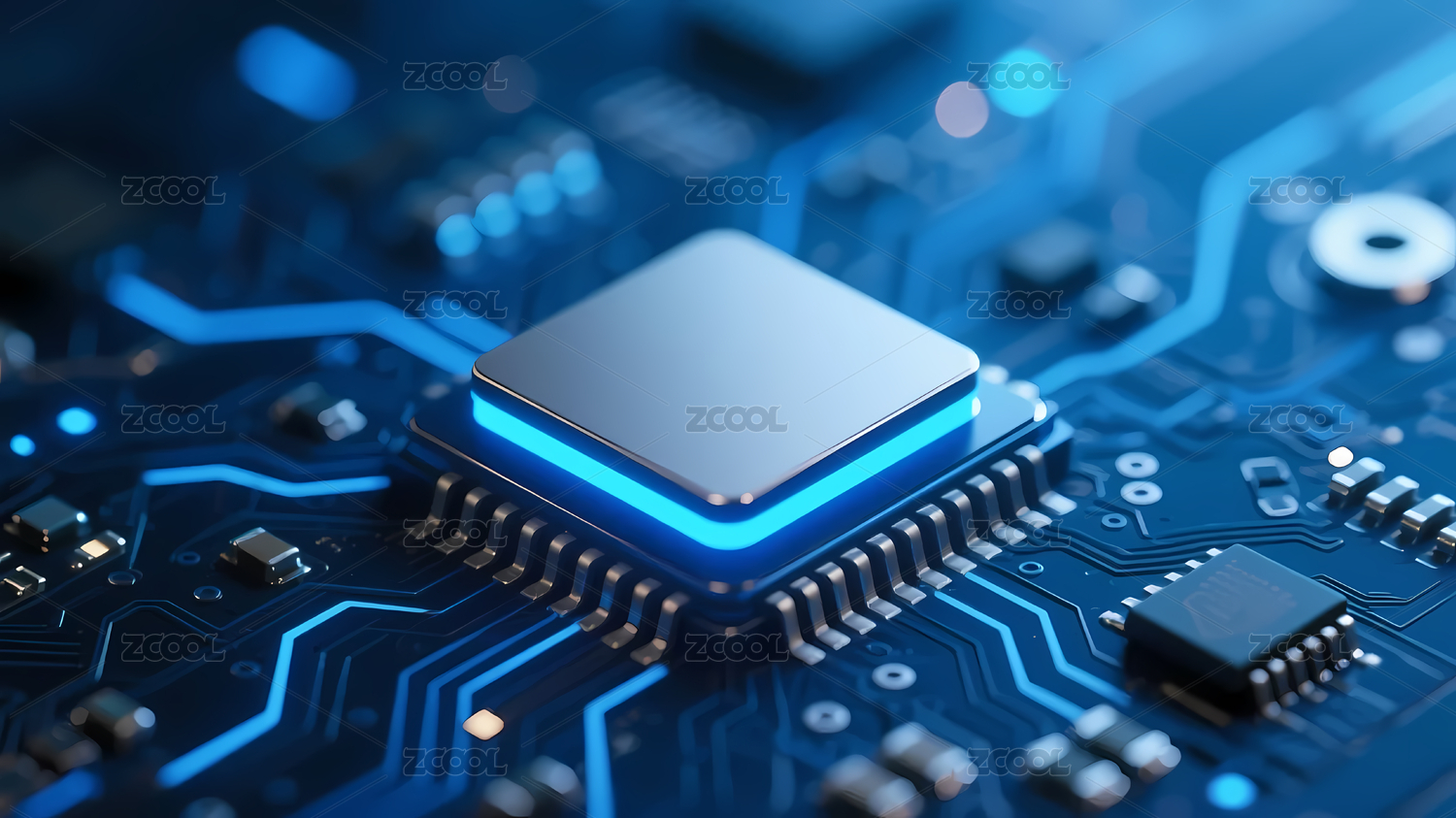 蓝色,科技,电子,发光,高科技,芯片,电路,芯片组,集成,线路