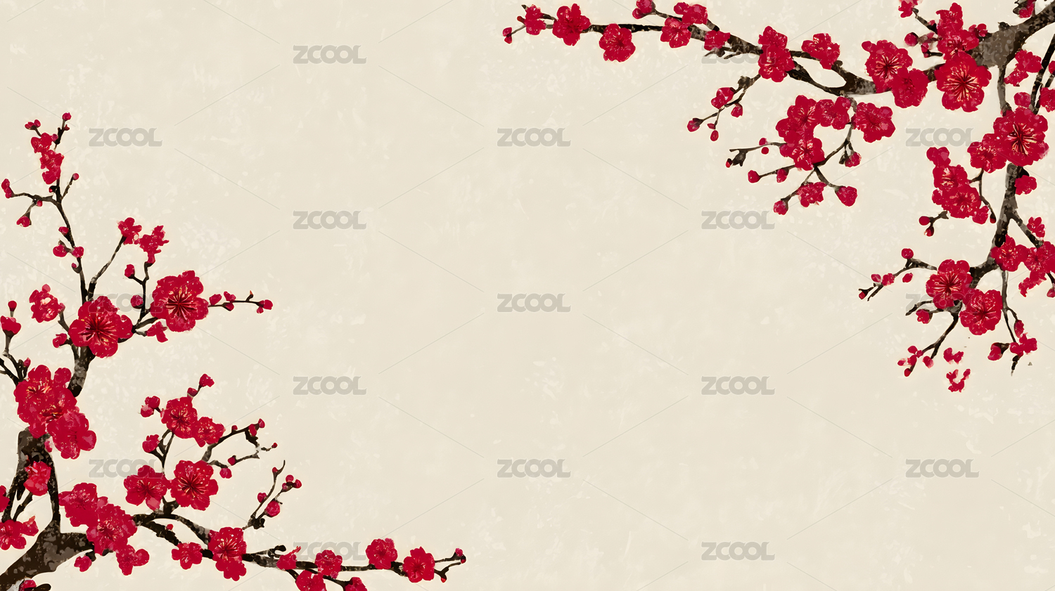 红梅水墨风山水场景