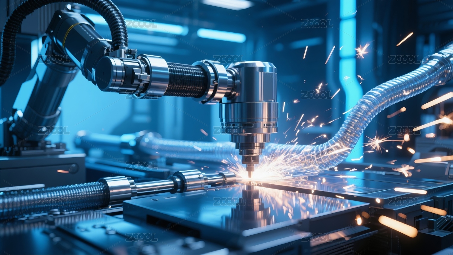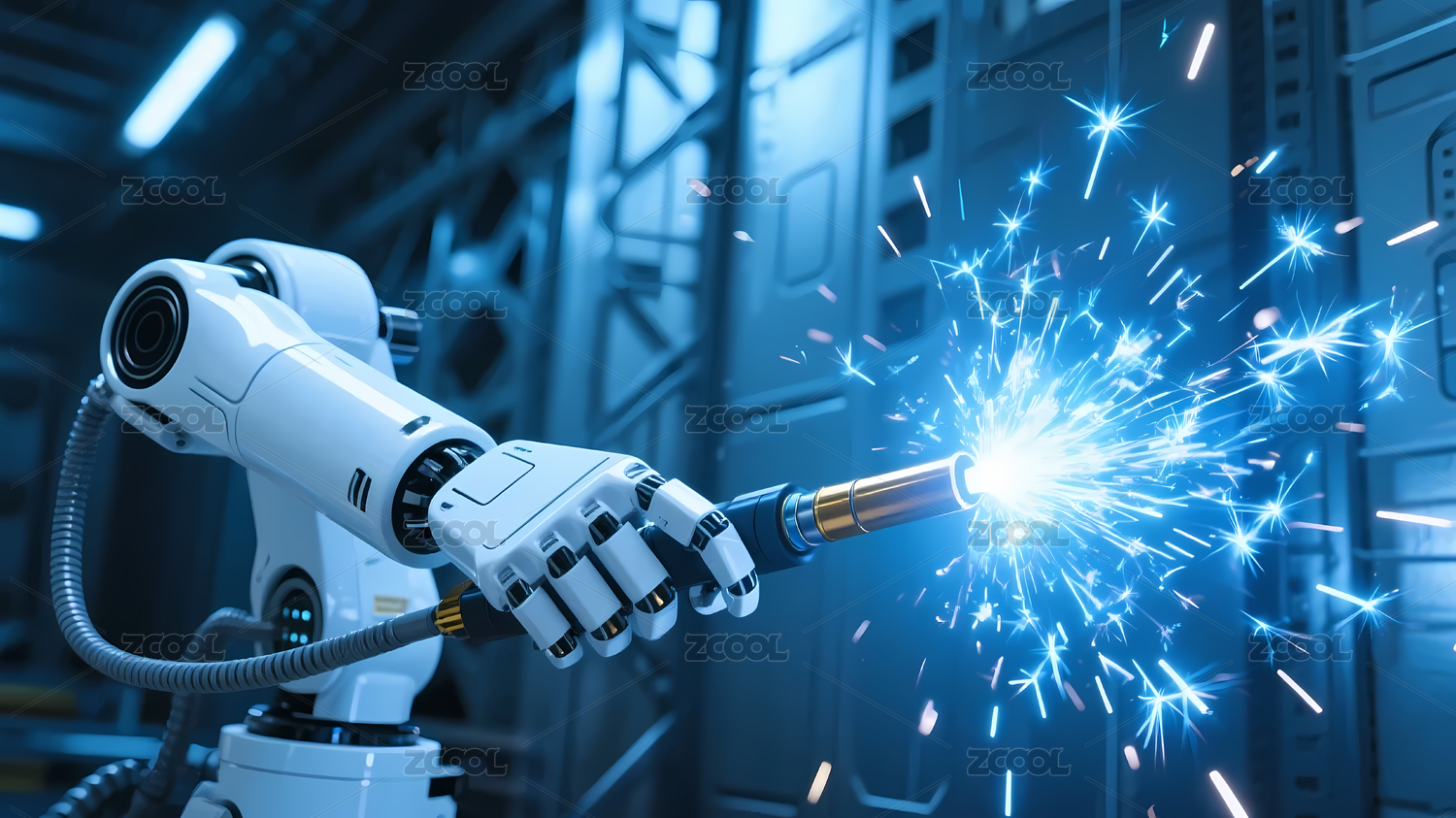 蓝色发光机械臂焊接图