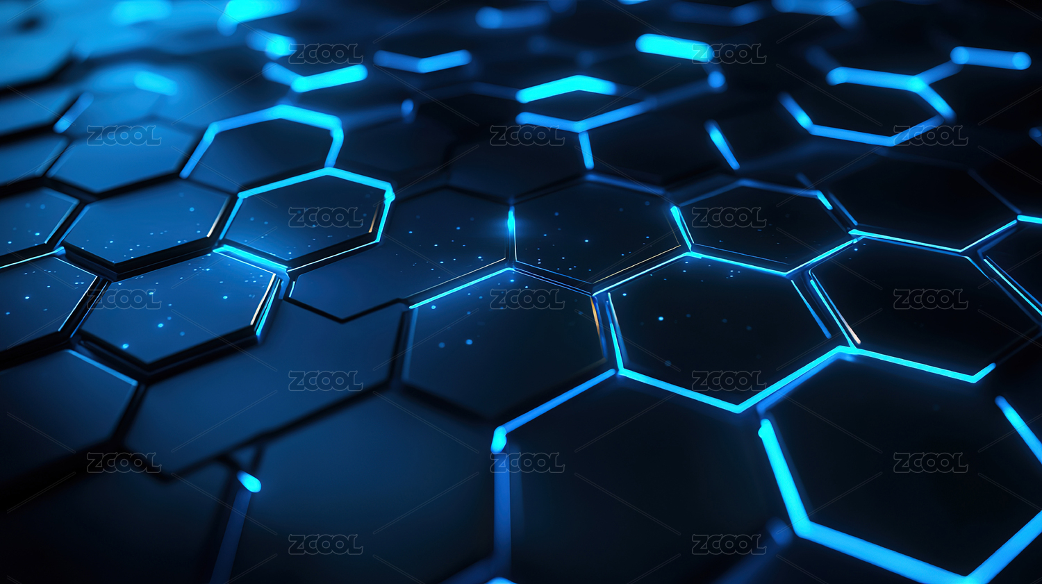 蓝色六边形网格与黑色背景