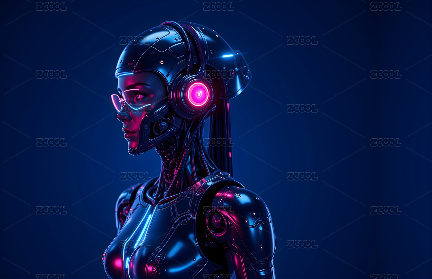 赛博风格女性机器人侧影