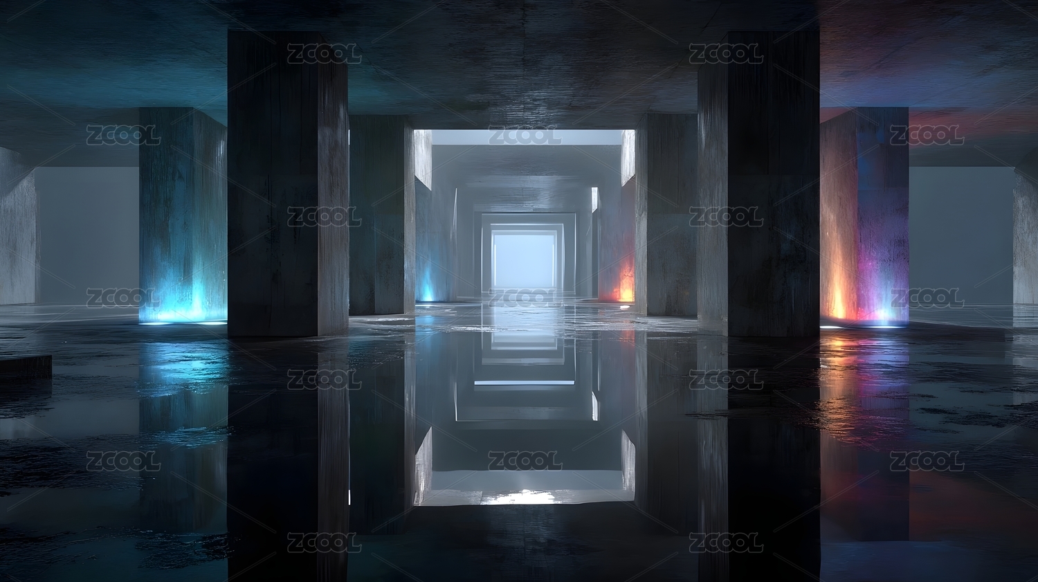 彩色灯光走廊抽象场景