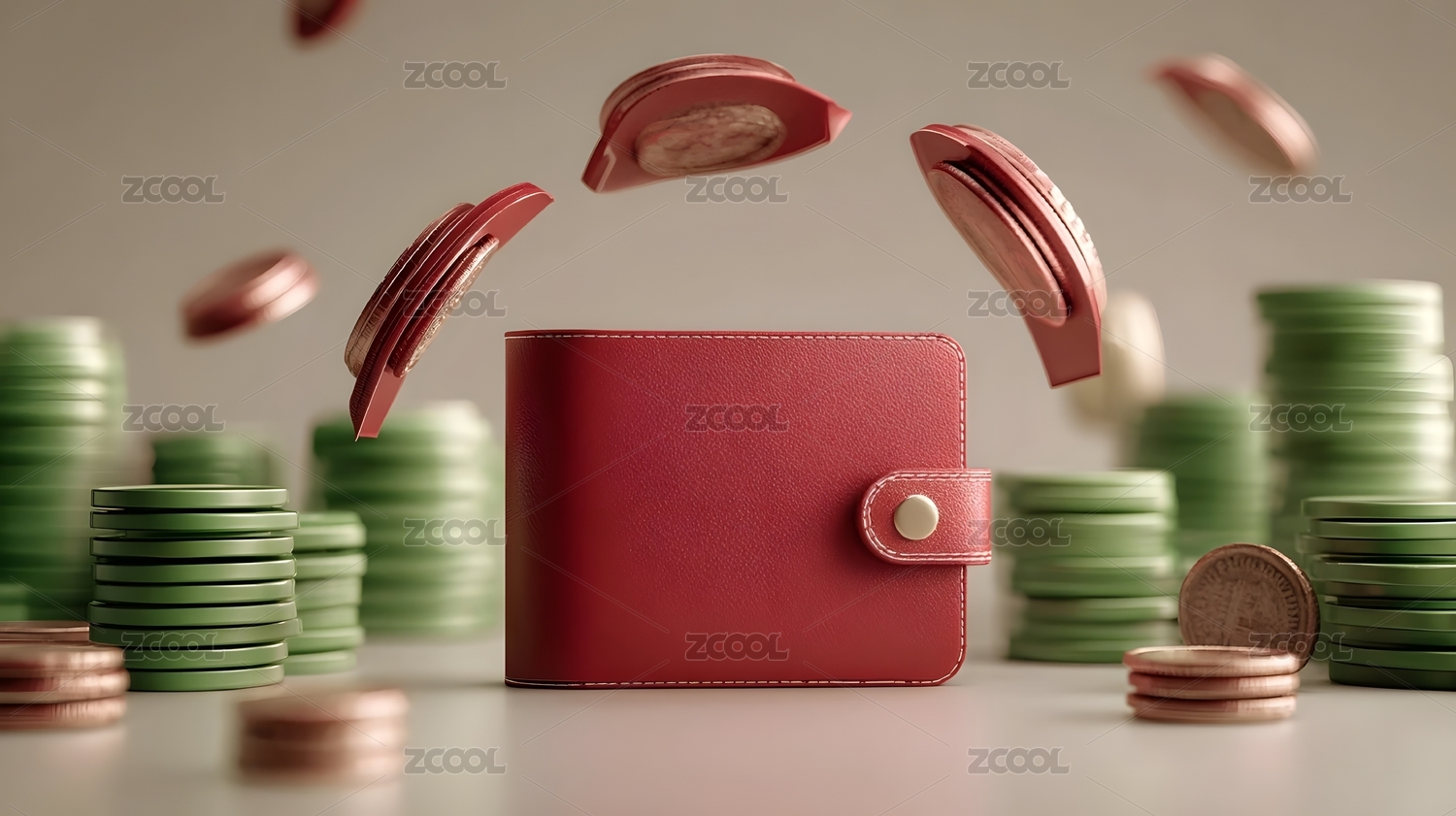 红色钱包金币满溢象征财富增长