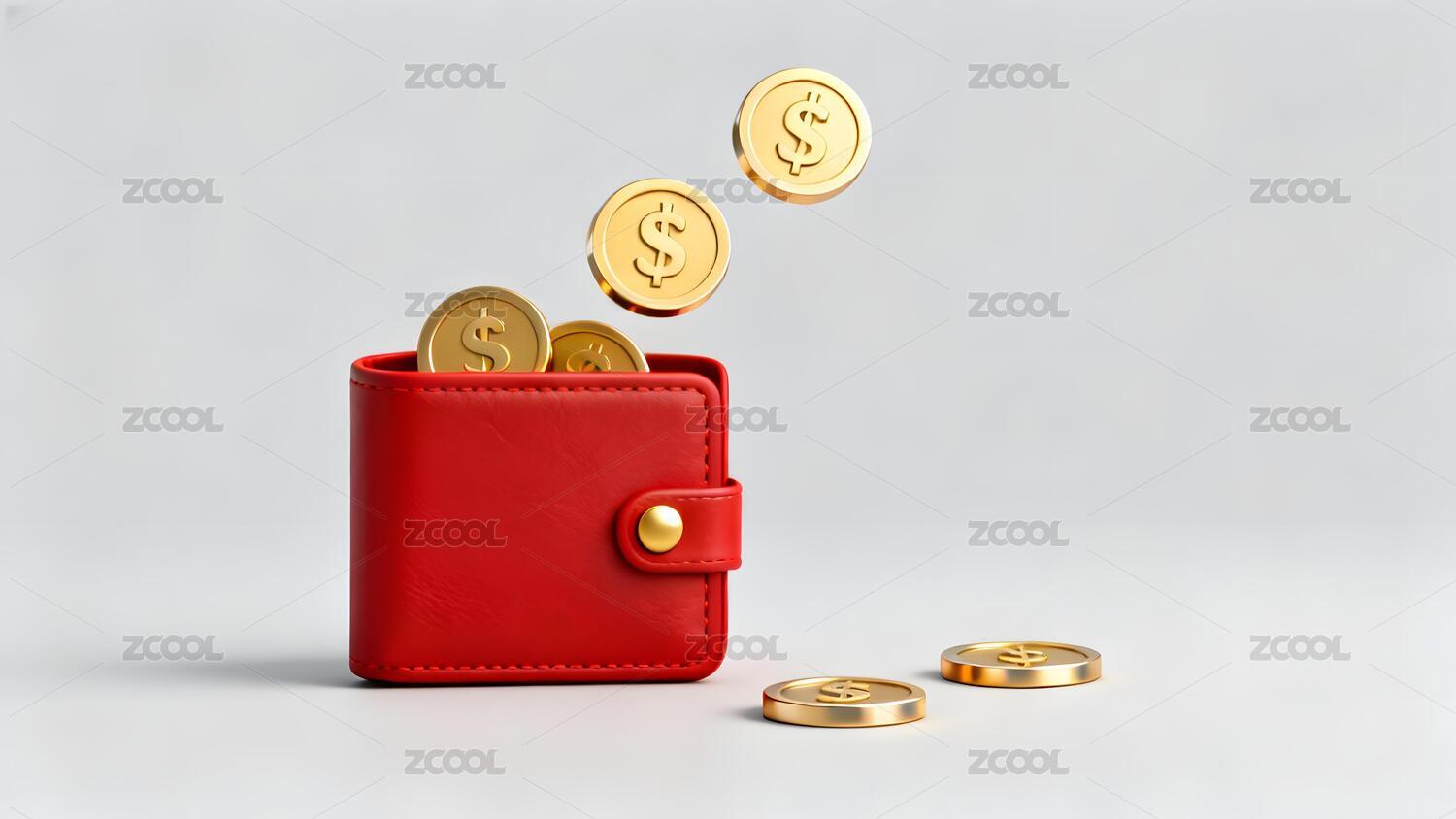红色钱包金币满溢财富象征