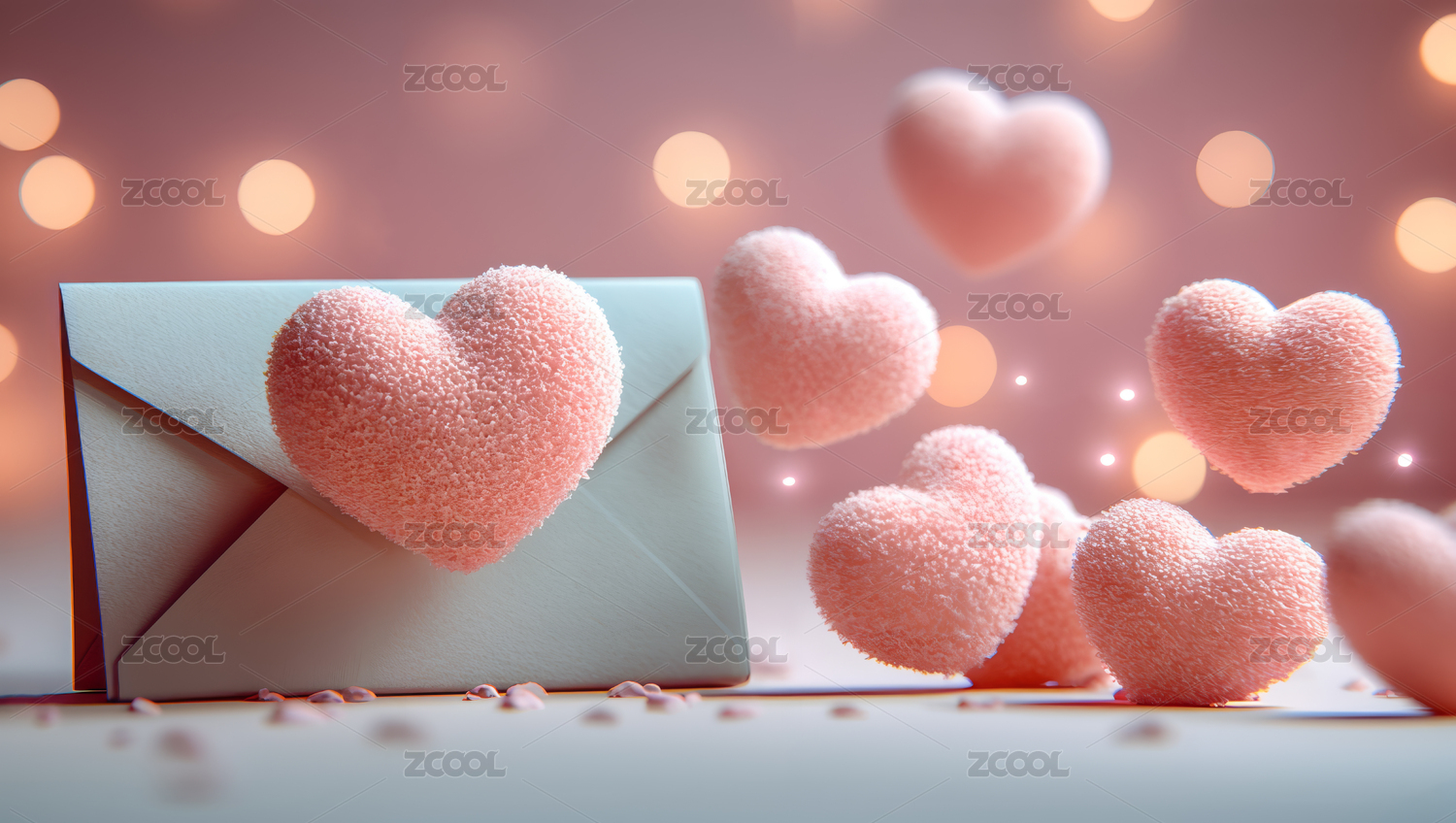 粉色信封与爱心漂浮背景