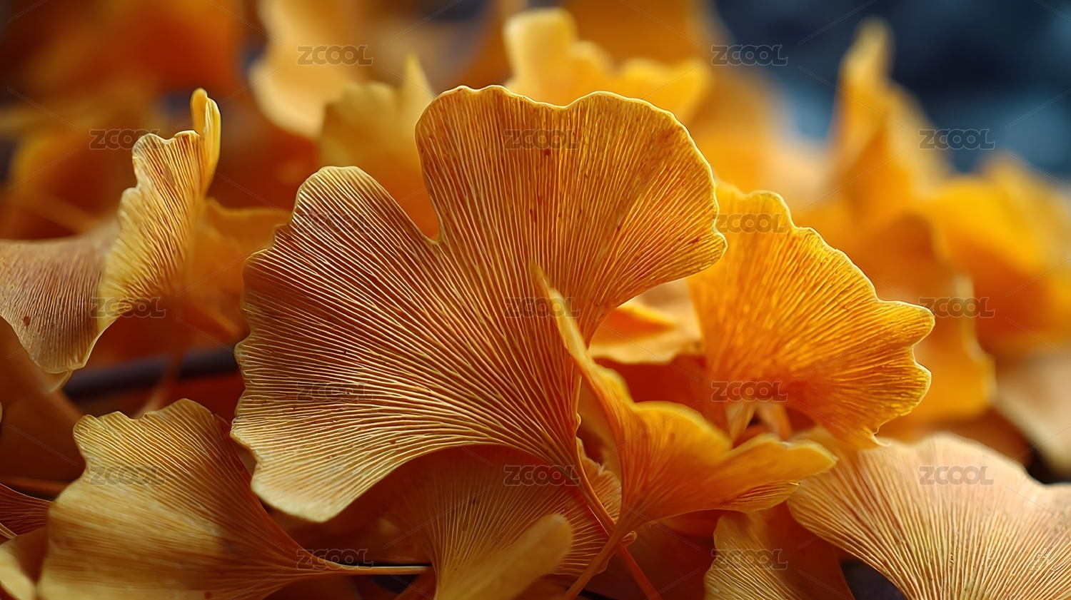 植物,银杏,叶子,叶脉,秋天,自然,叶缘,叶形,叶柄,特写
