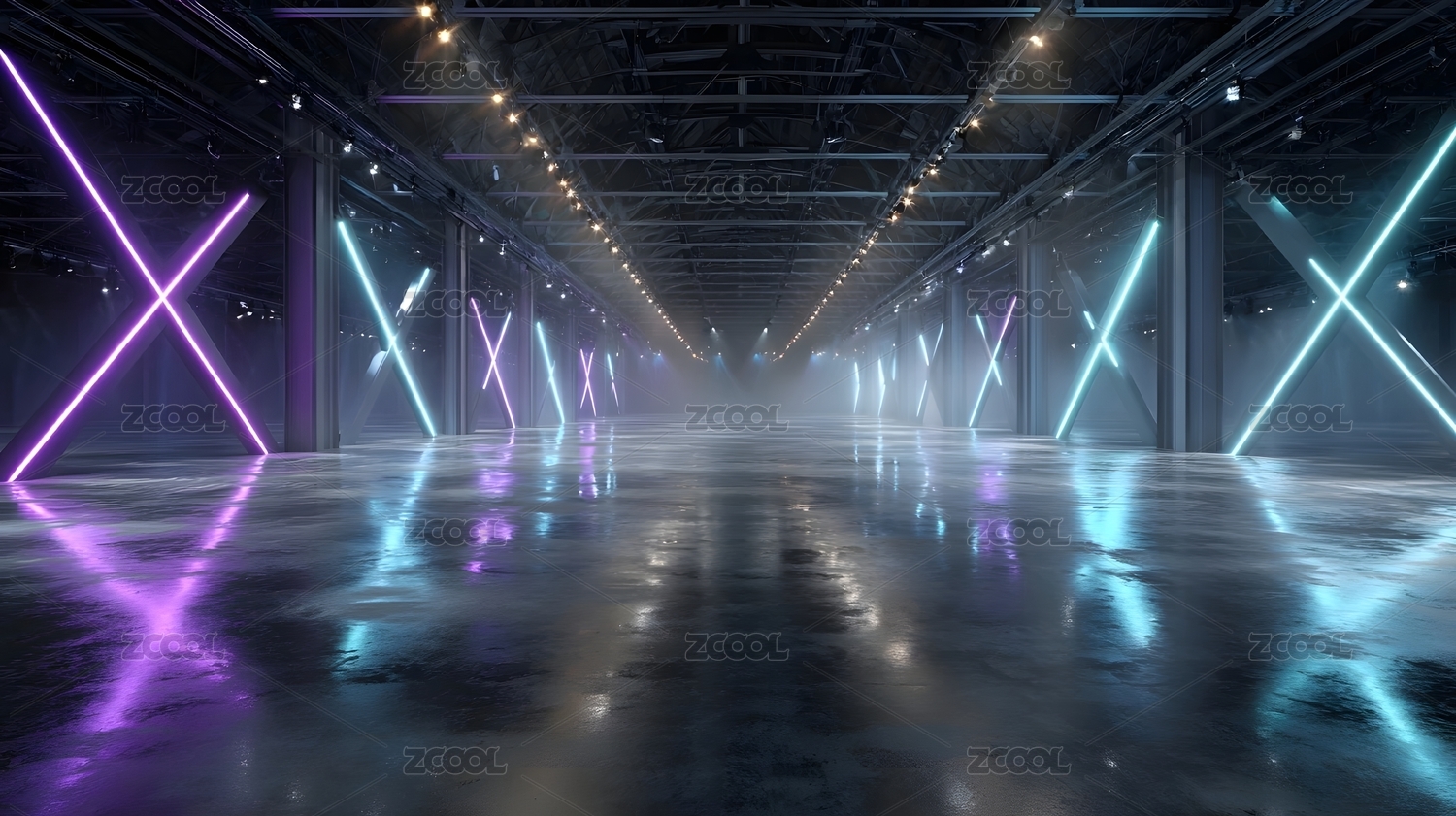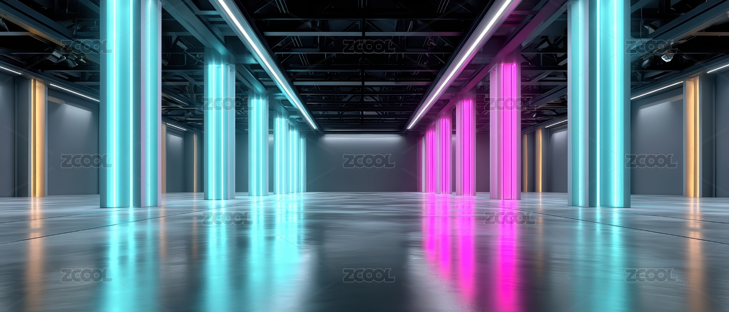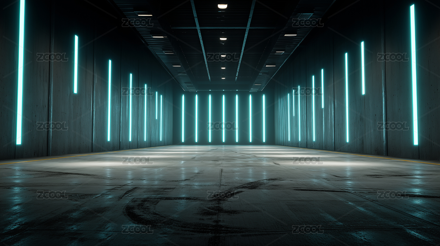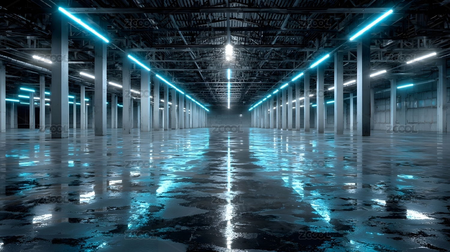 室内,反射,光效,蓝色,科技,未来,空间,现代,线条,结构