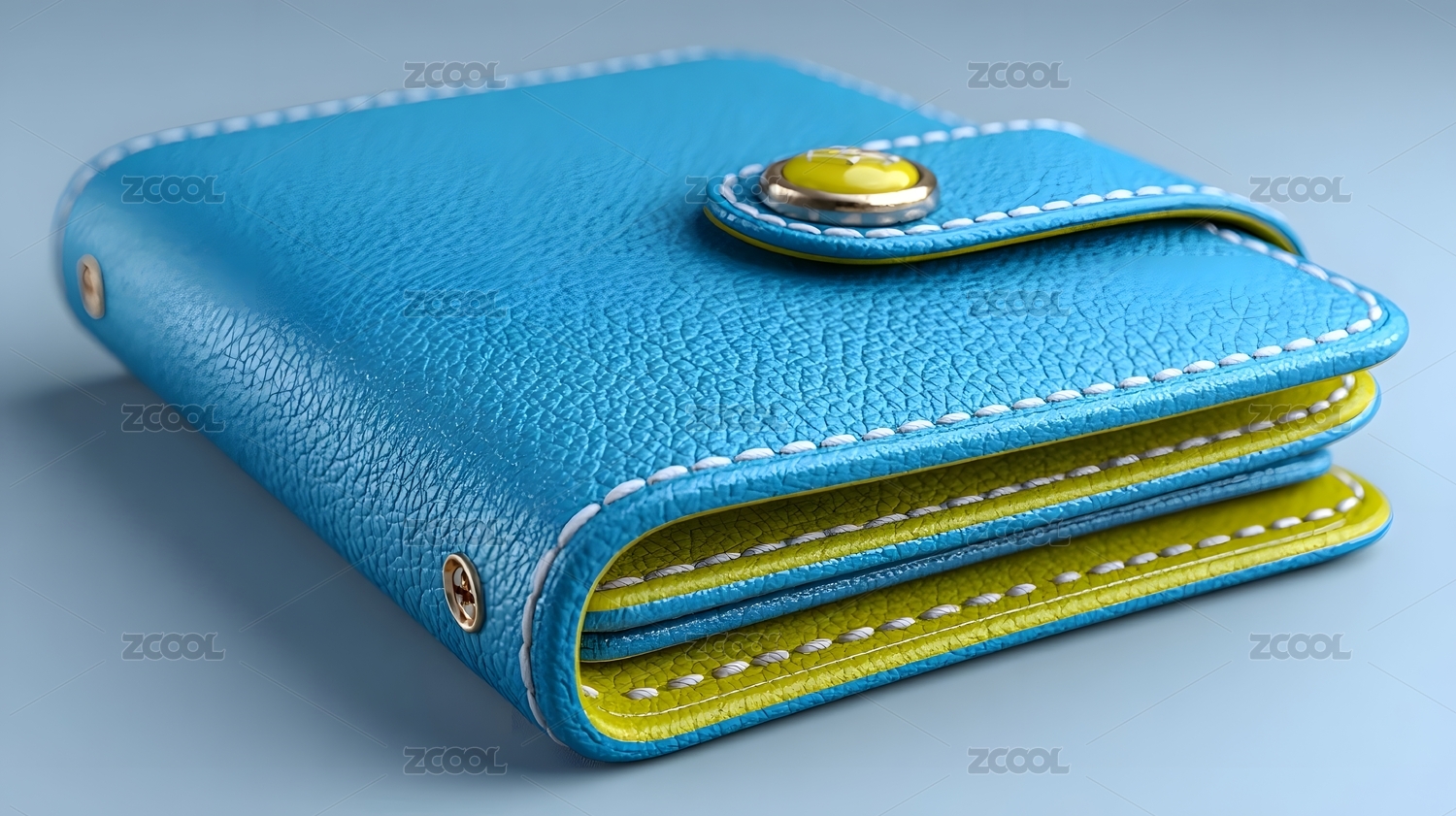 钱包,蓝色,黄色,皮革,折叠,皮夹,特写,质感,颜色,对比