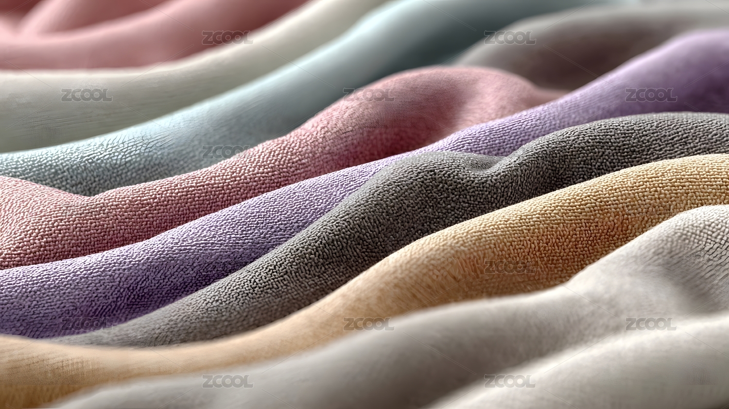 卷起的丝绒布料 渐变紫色光影 柔和氛围