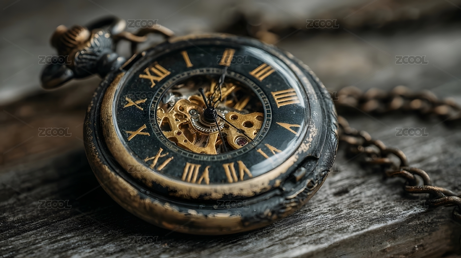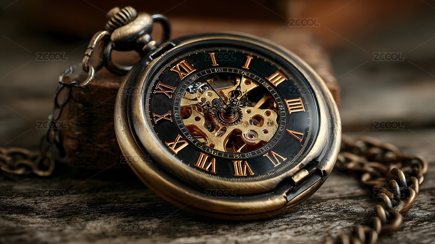 装饰,复古,细节,特写,怀表,链子,金属,古典,指针,时间