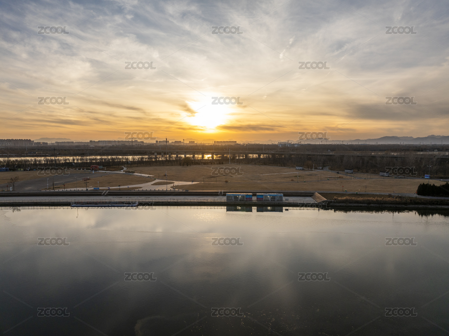 河北省石家庄市滹沱河生态旅游区航拍图片