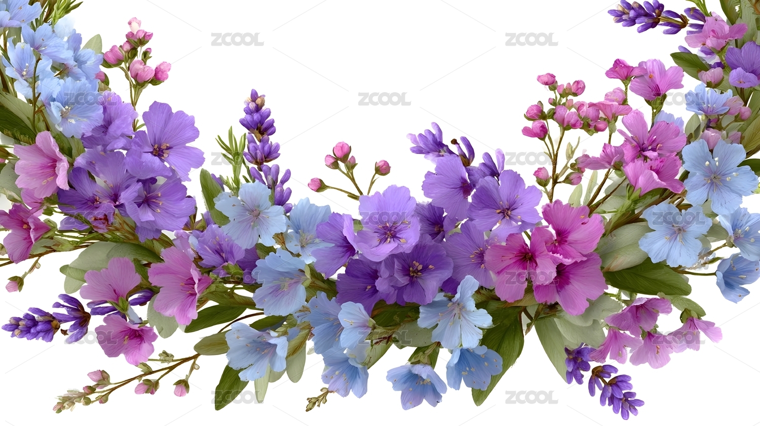 紫色花卉与绿叶装饰