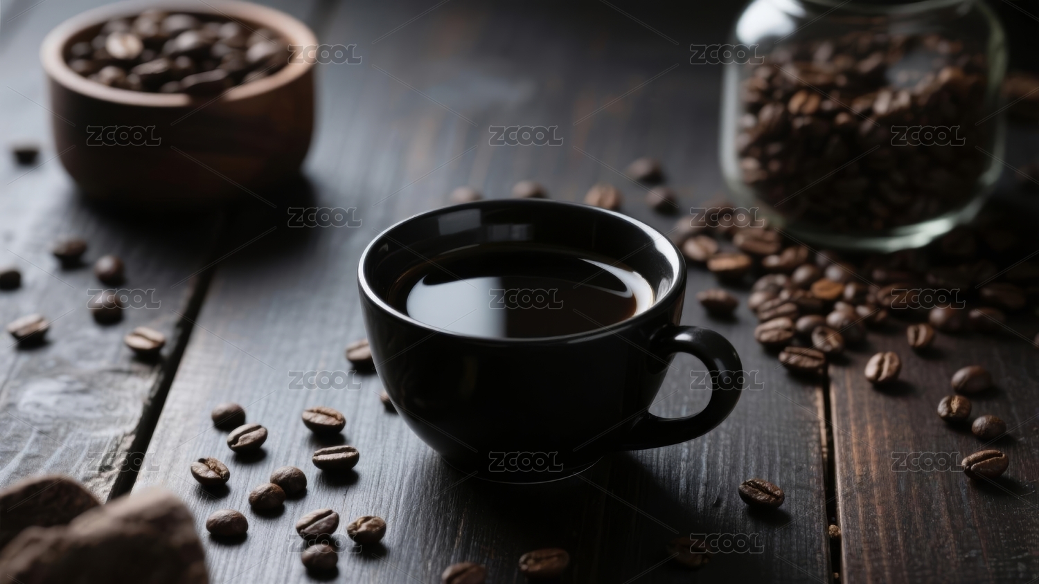 黑咖啡与咖啡豆