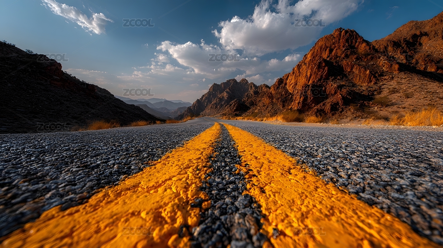 天空,道路,地面,红色,自然,背景,黄色,山脉,山峰,远山