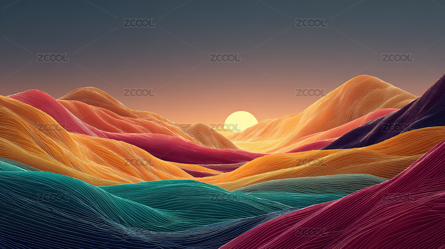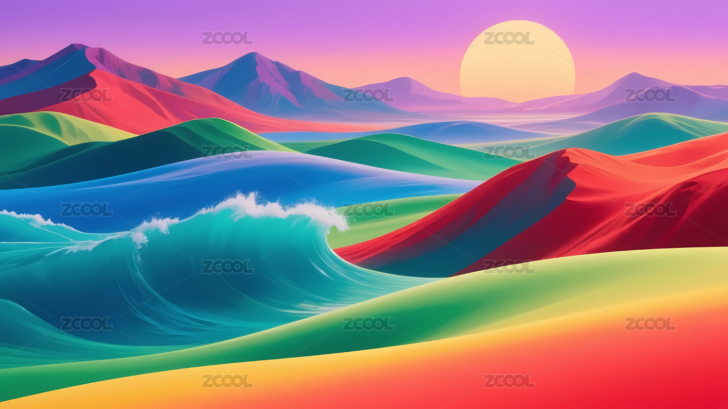 背景,波浪,紫色,橙色,天空,色彩,太阳,鲜艳,山峦,梦幻