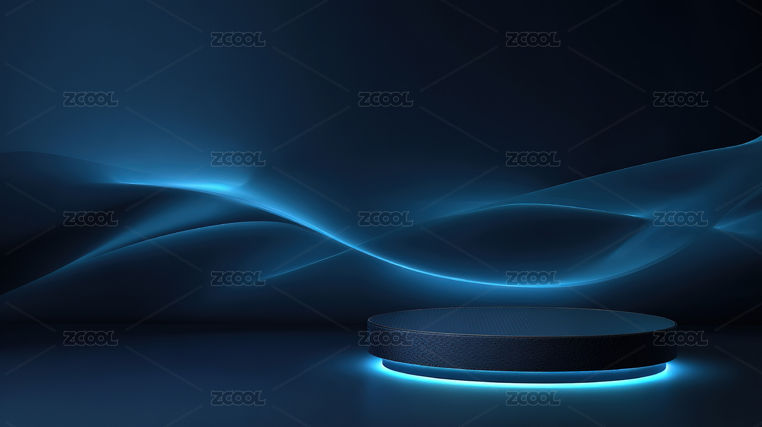 黑色平台与渐变蓝波浪背景