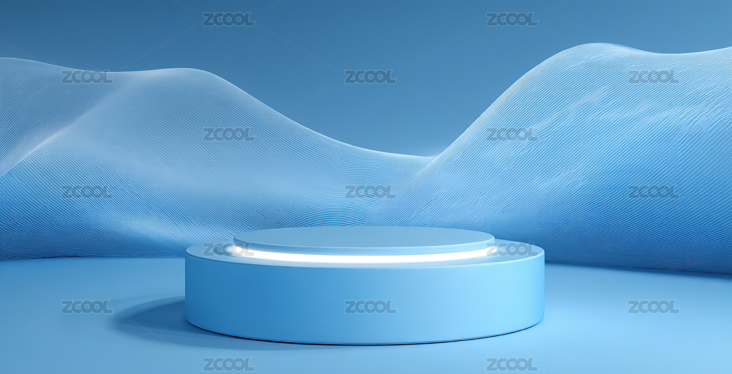 蓝色波浪背景中的圆形展台