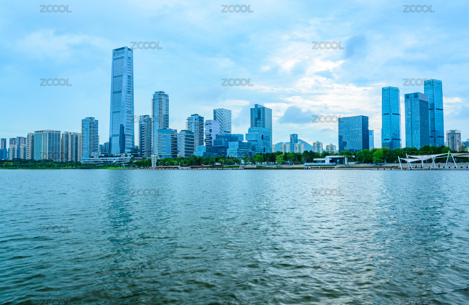 中国深圳湾公园海岸天际线