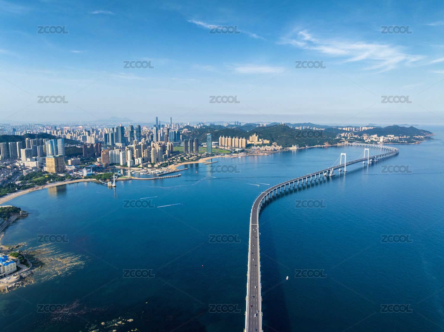 航拍大连城市跨海大桥海岸线