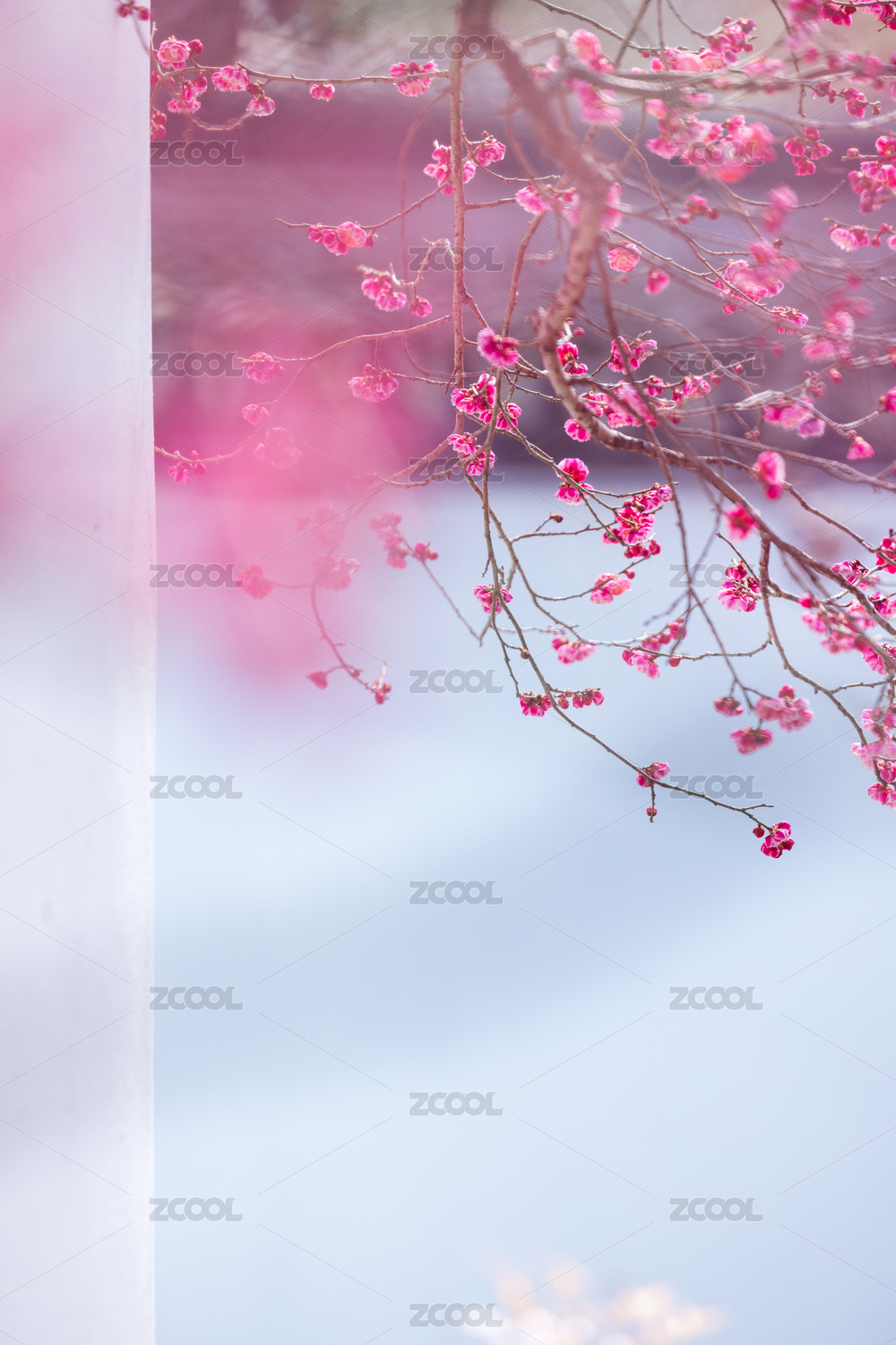 春天古典园林中的红梅
