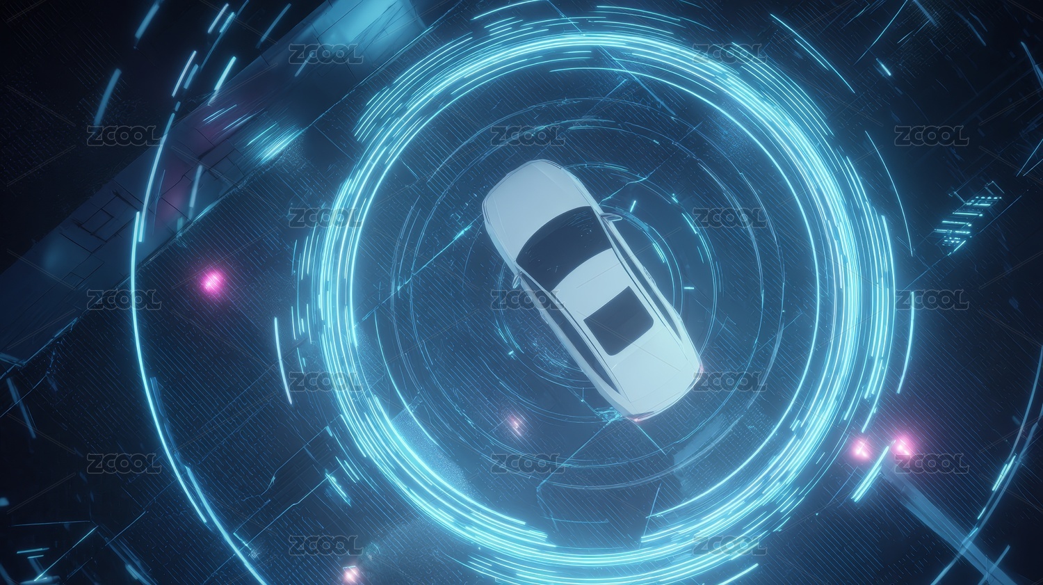 汽车,俯视,科技感,光环,蓝色,线条,智能驾驶,未来,概念,创新