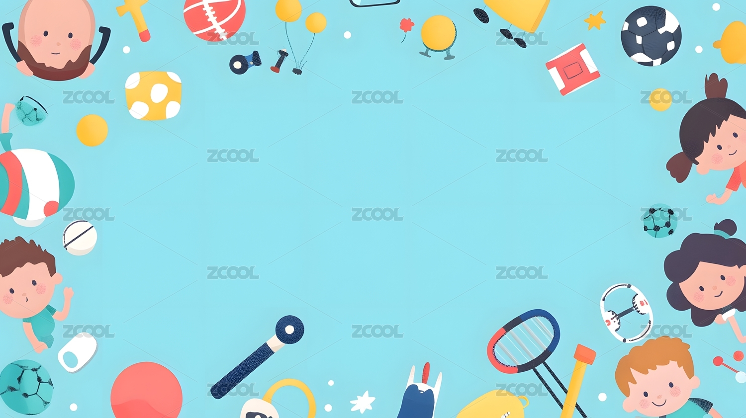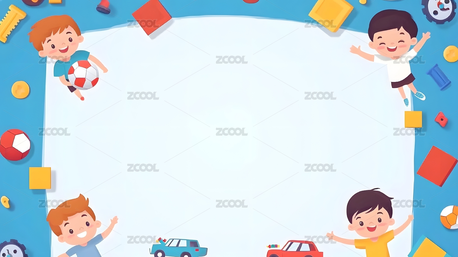卡通,风格,边框,设计,孩童,玩耍,角落,骑自行车,玩球,吹泡泡