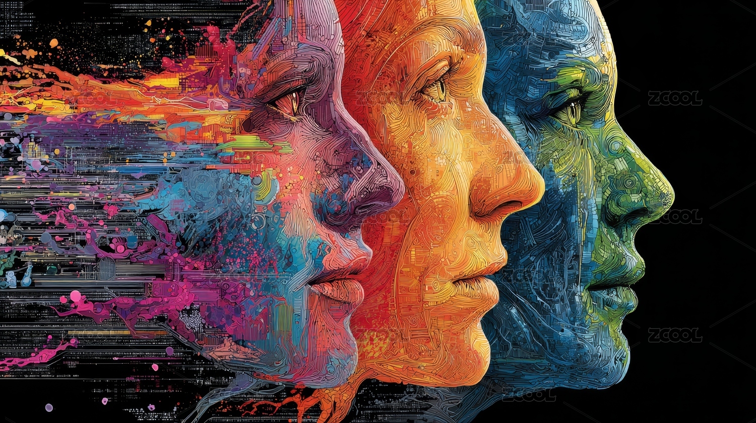 现代,当代,抽象,艺术,创意,动态,独特,人物,面部,泼溅