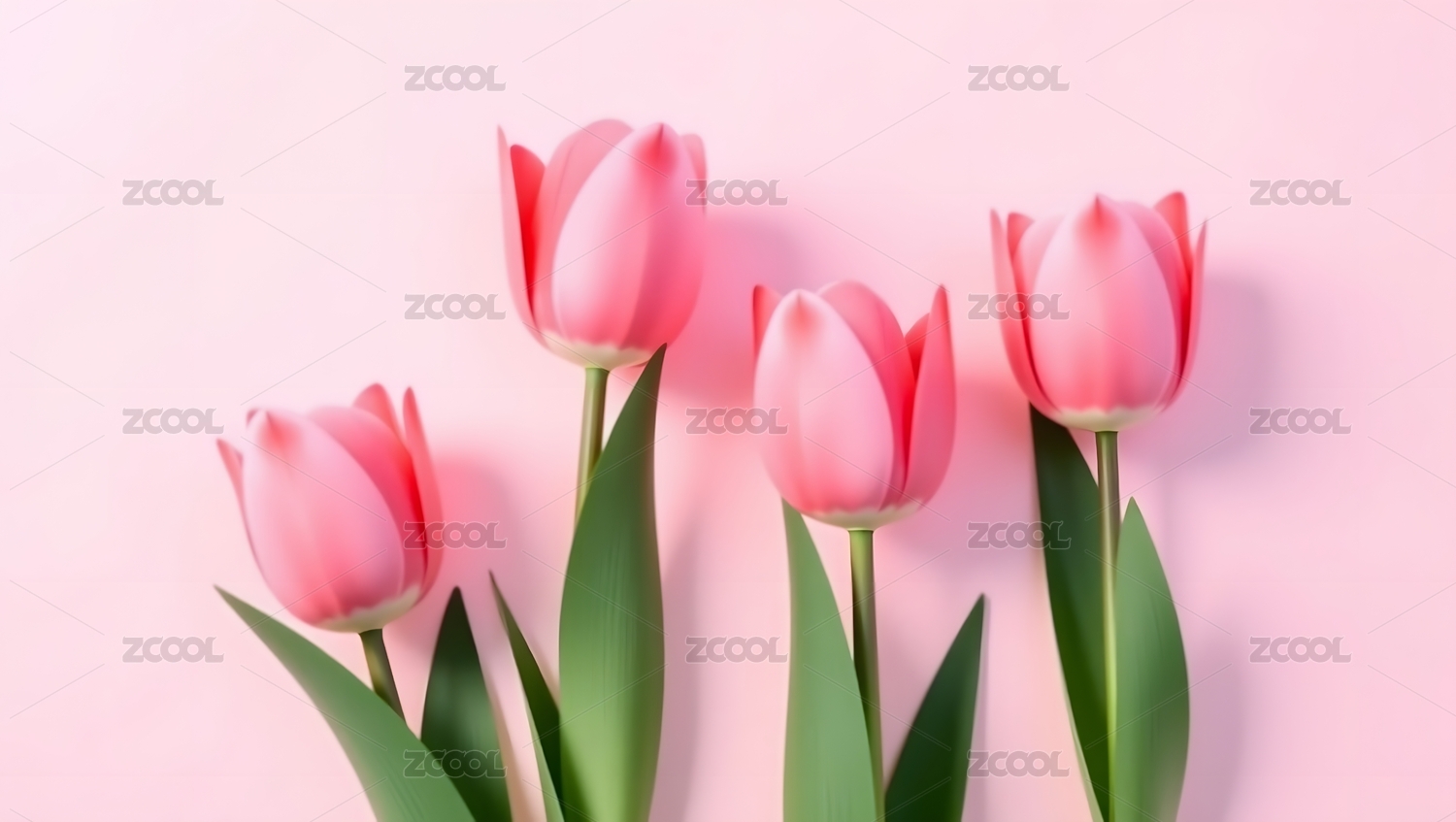 四朵粉色郁金香特写
