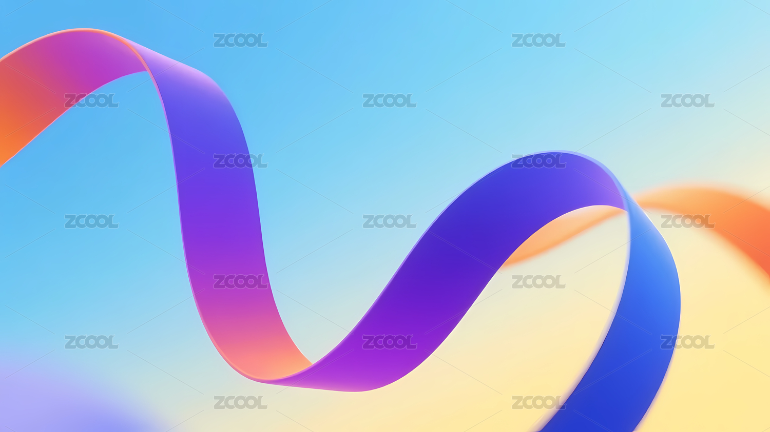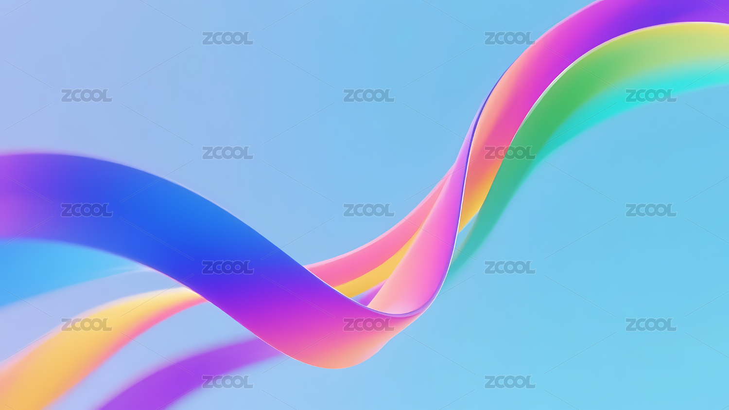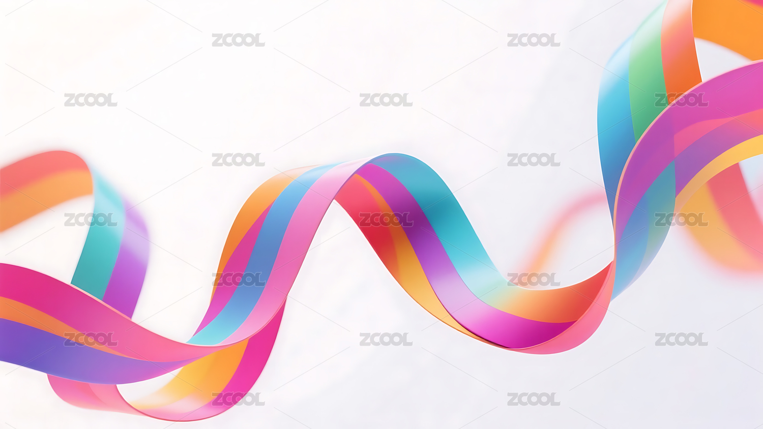 紫粉蓝渐变波浪丝带