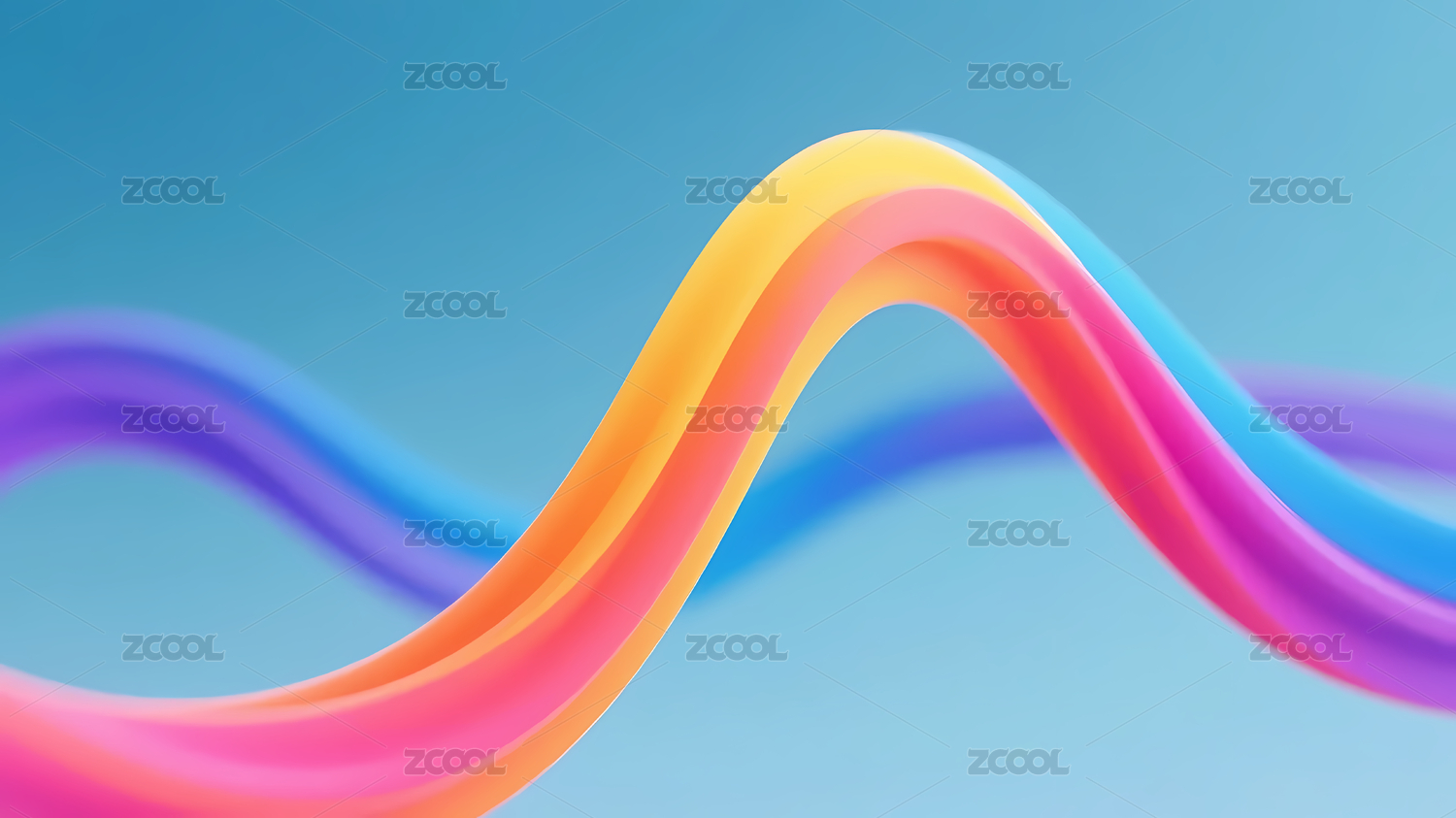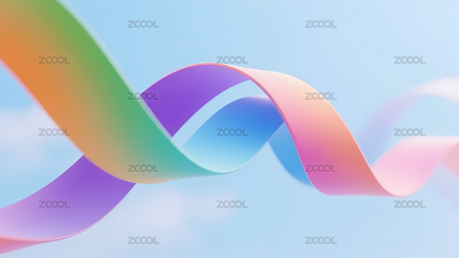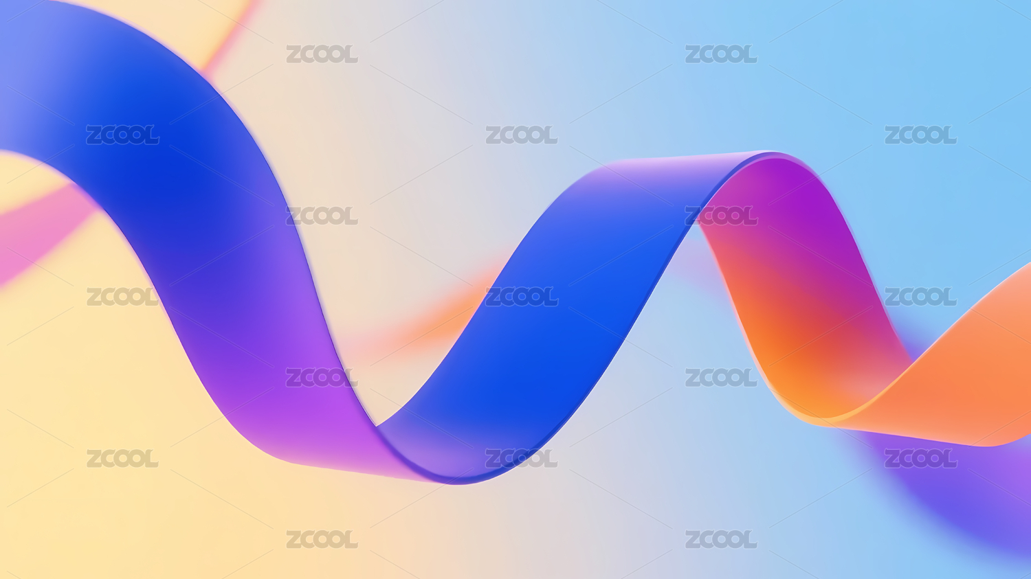 紫粉蓝渐变波浪丝带