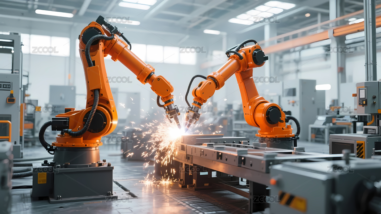 现代化工业车间的机械臂焊接作业