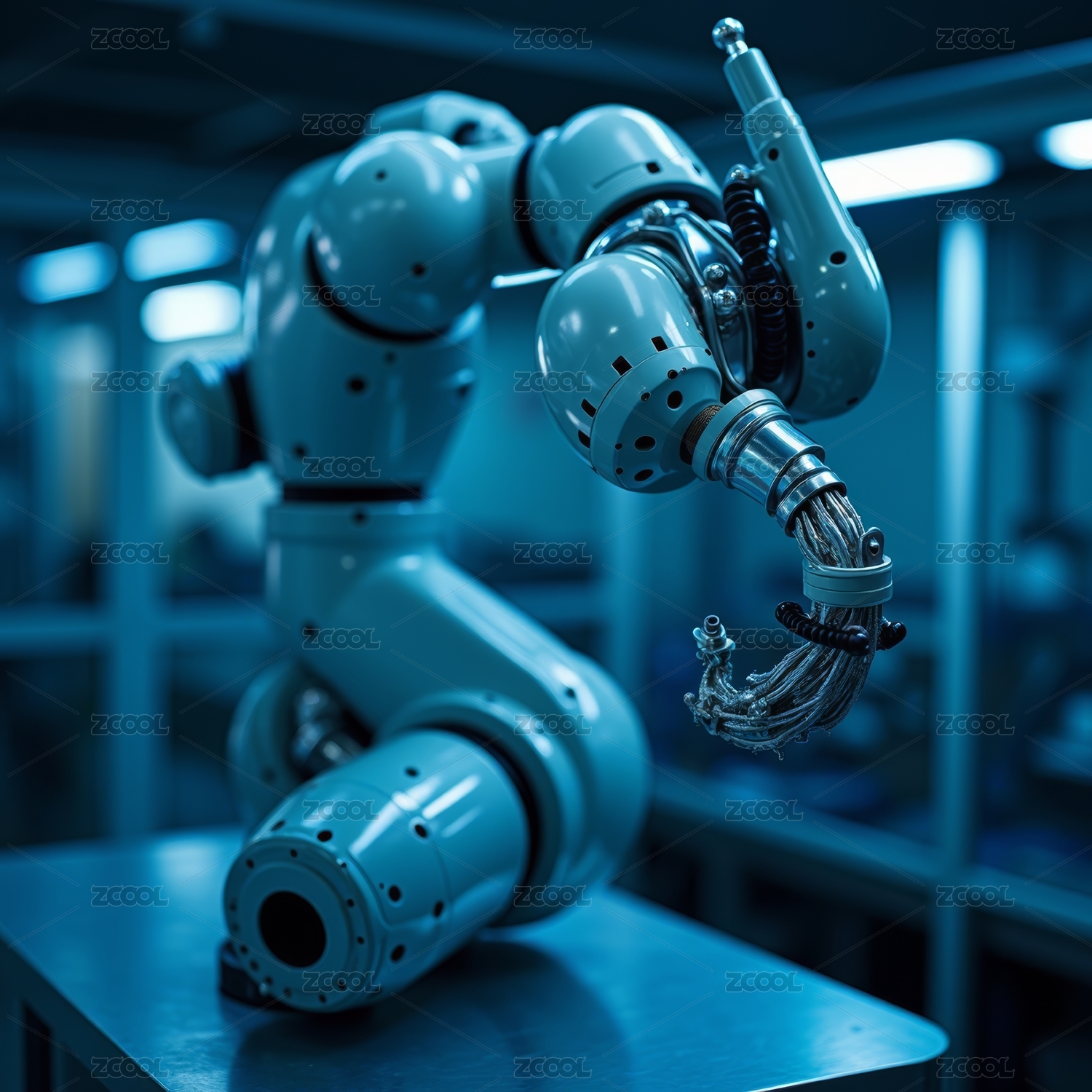 蓝色机械臂工业操作图