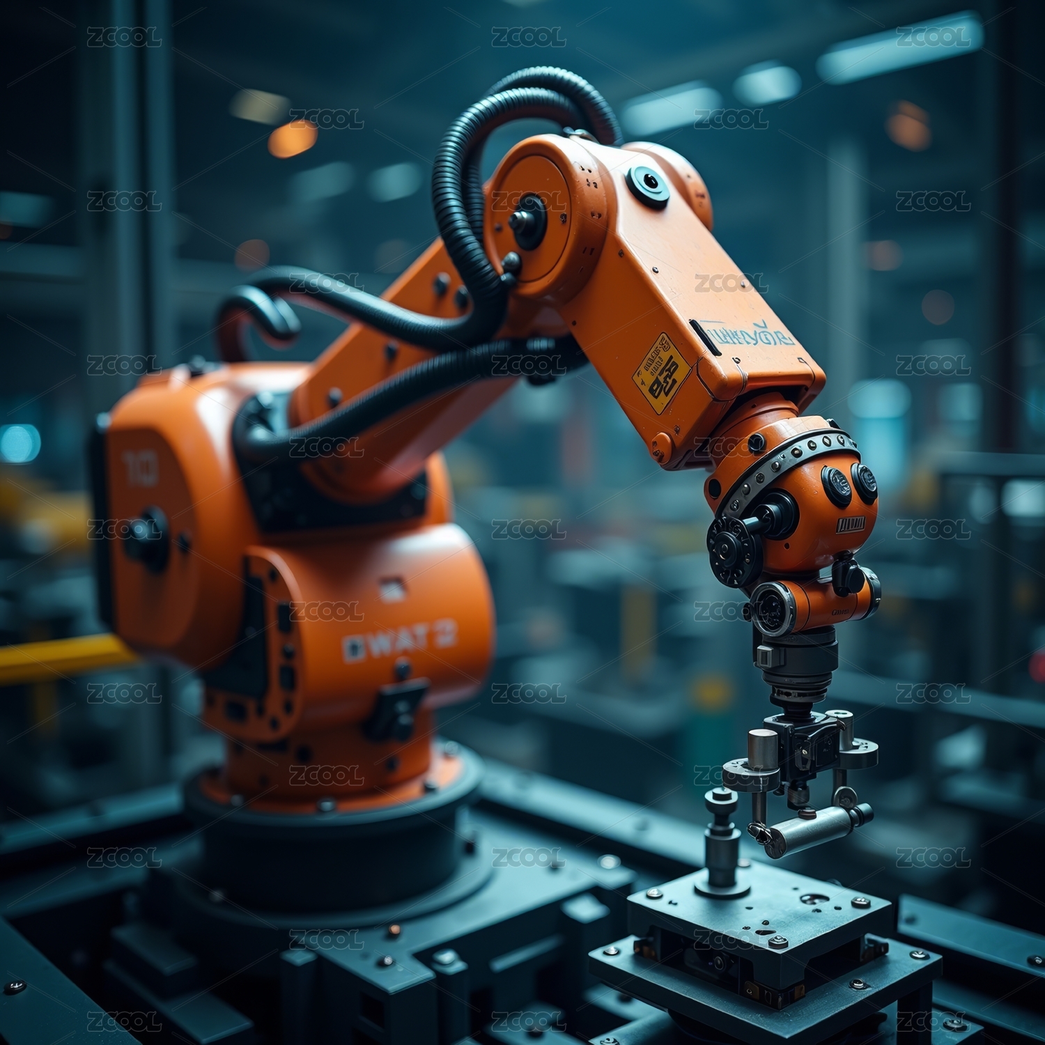 橙色机械臂工业作业图