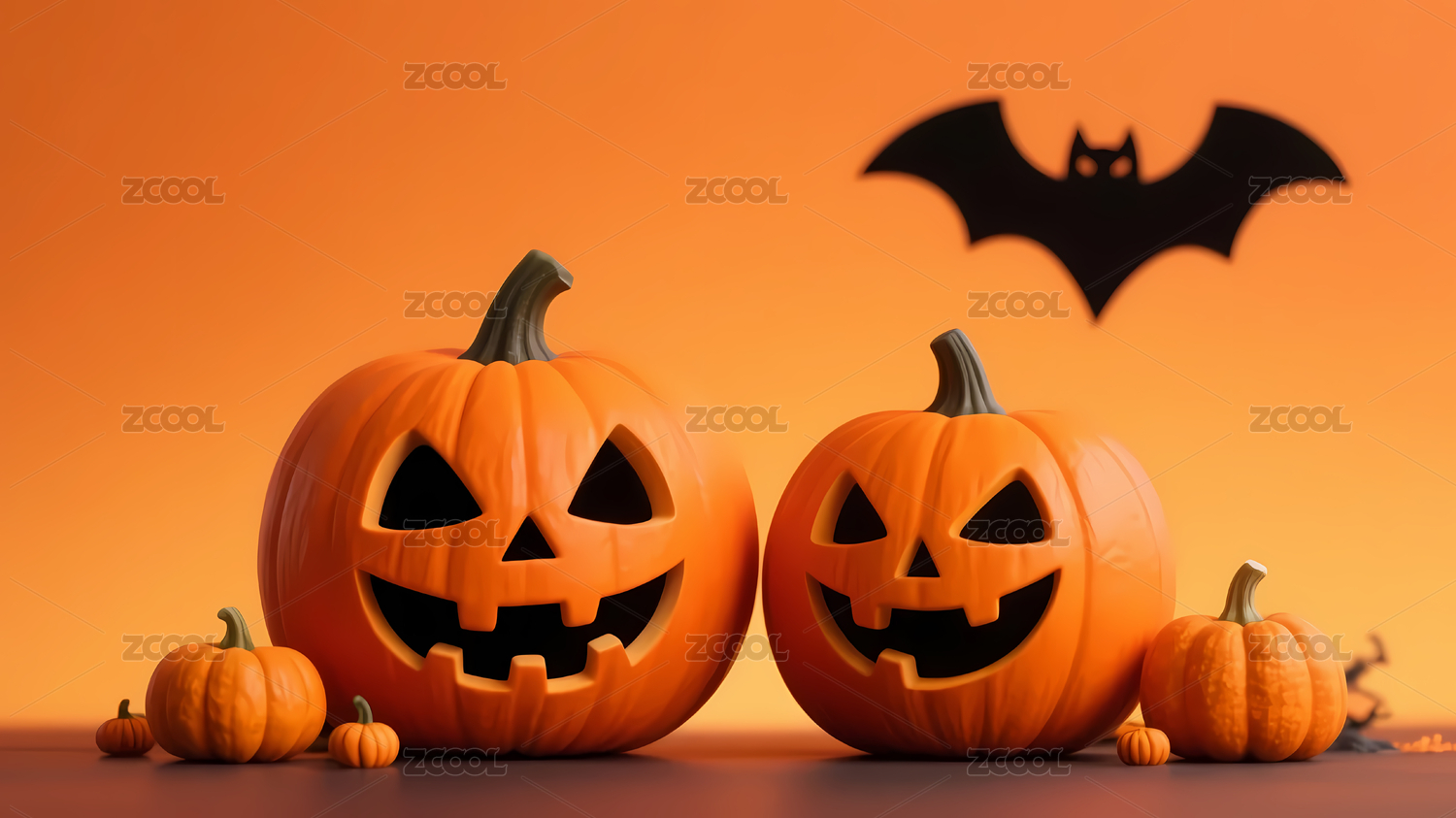 万圣节南瓜与蝙蝠装饰