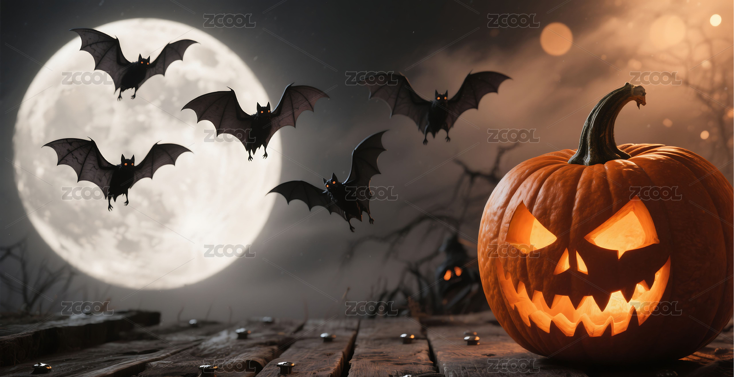 万圣节南瓜与蝙蝠夜空