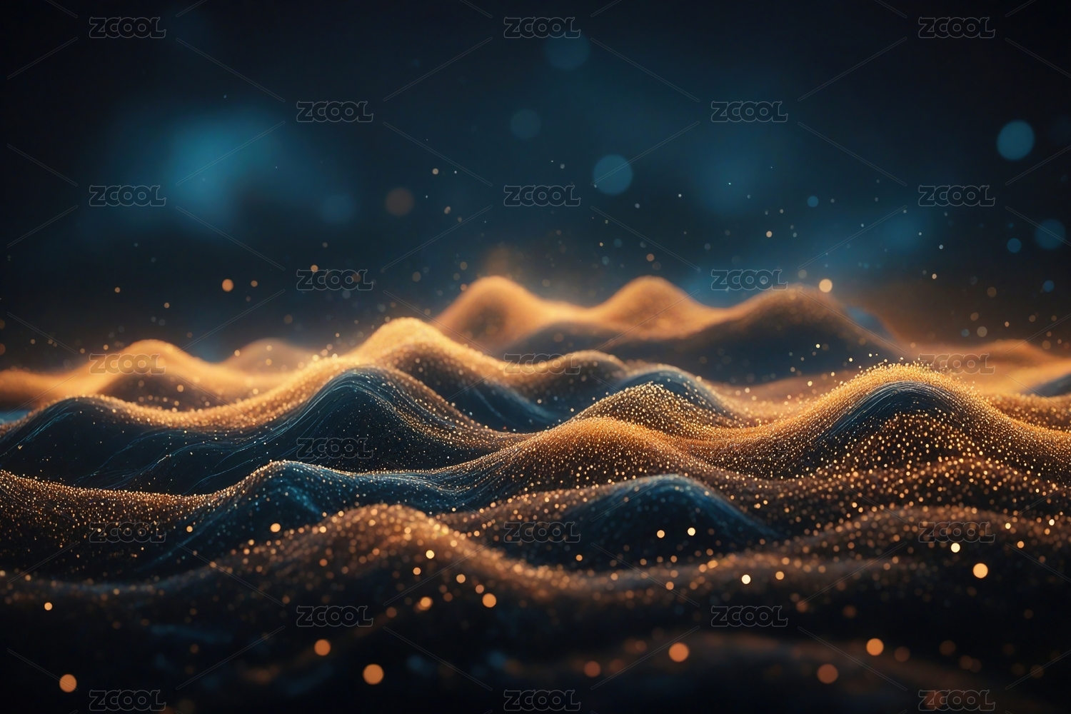 背景,金色,夜空,波浪,结构,光点,白色,深蓝色,物质,点缀