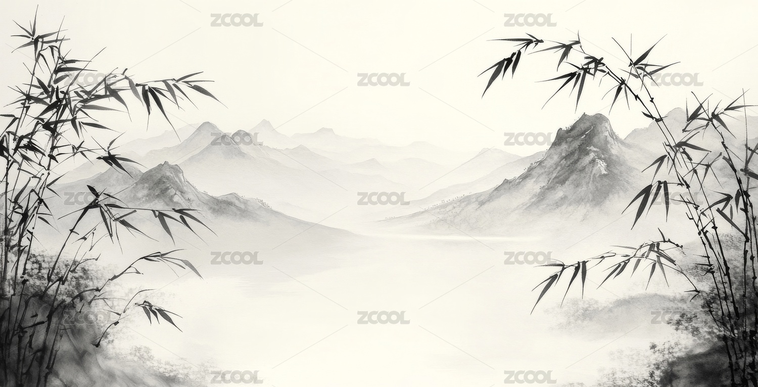 自然,和谐,写实,茅屋,田园,宁静,淡雅,水墨,写意,竹林