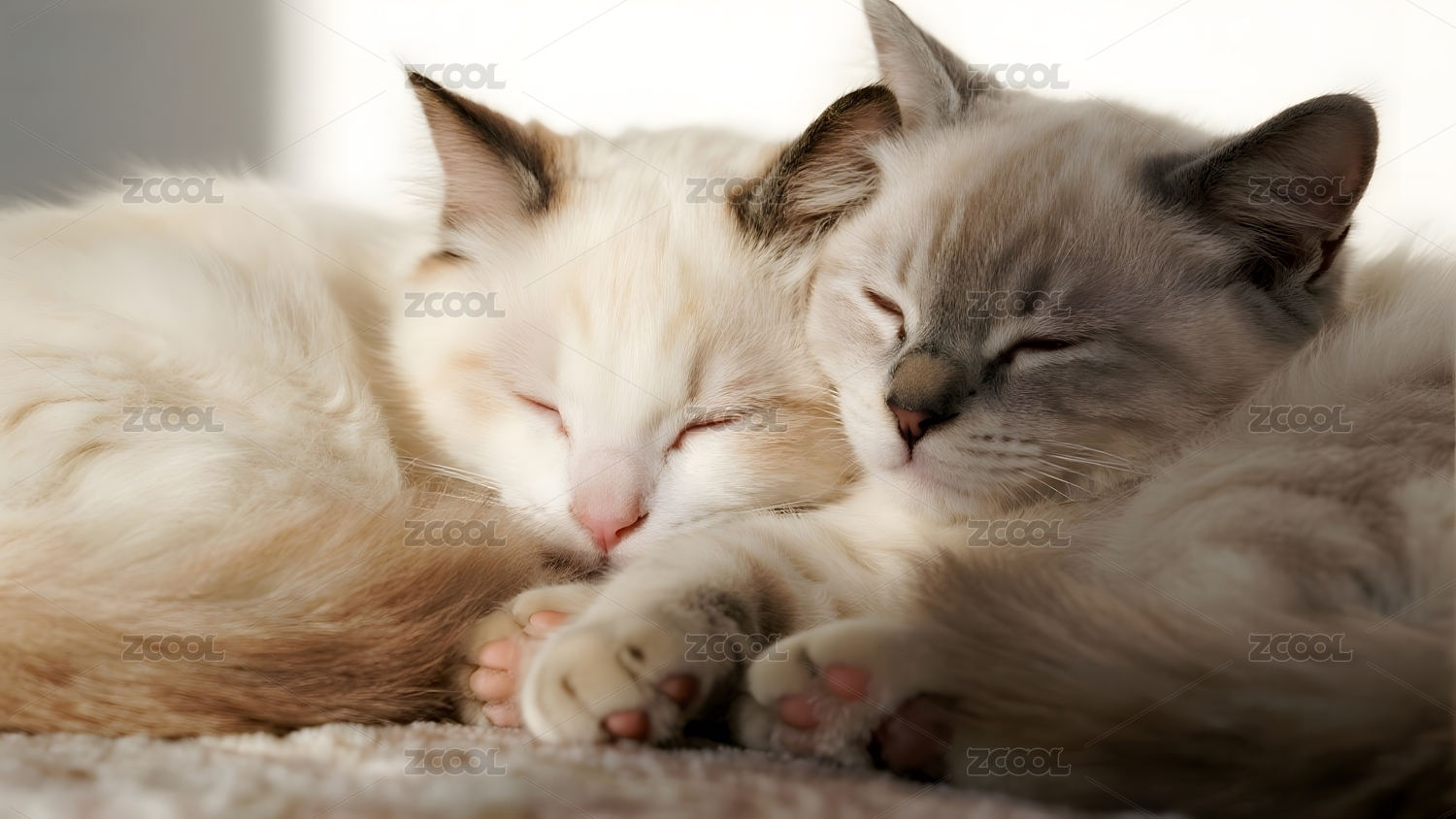 静谧,摄影,艺术,和谐,猫咪,午睡,白色,橙色,毛茸茸,可爱