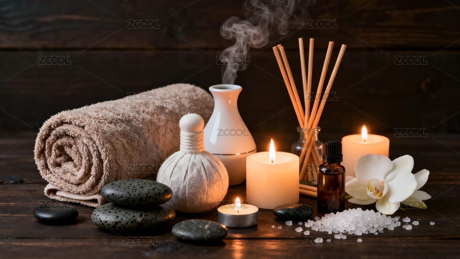 宁静,写实,香薰,蜡烛,水疗,空间,静谧,温馨,放松,治愈