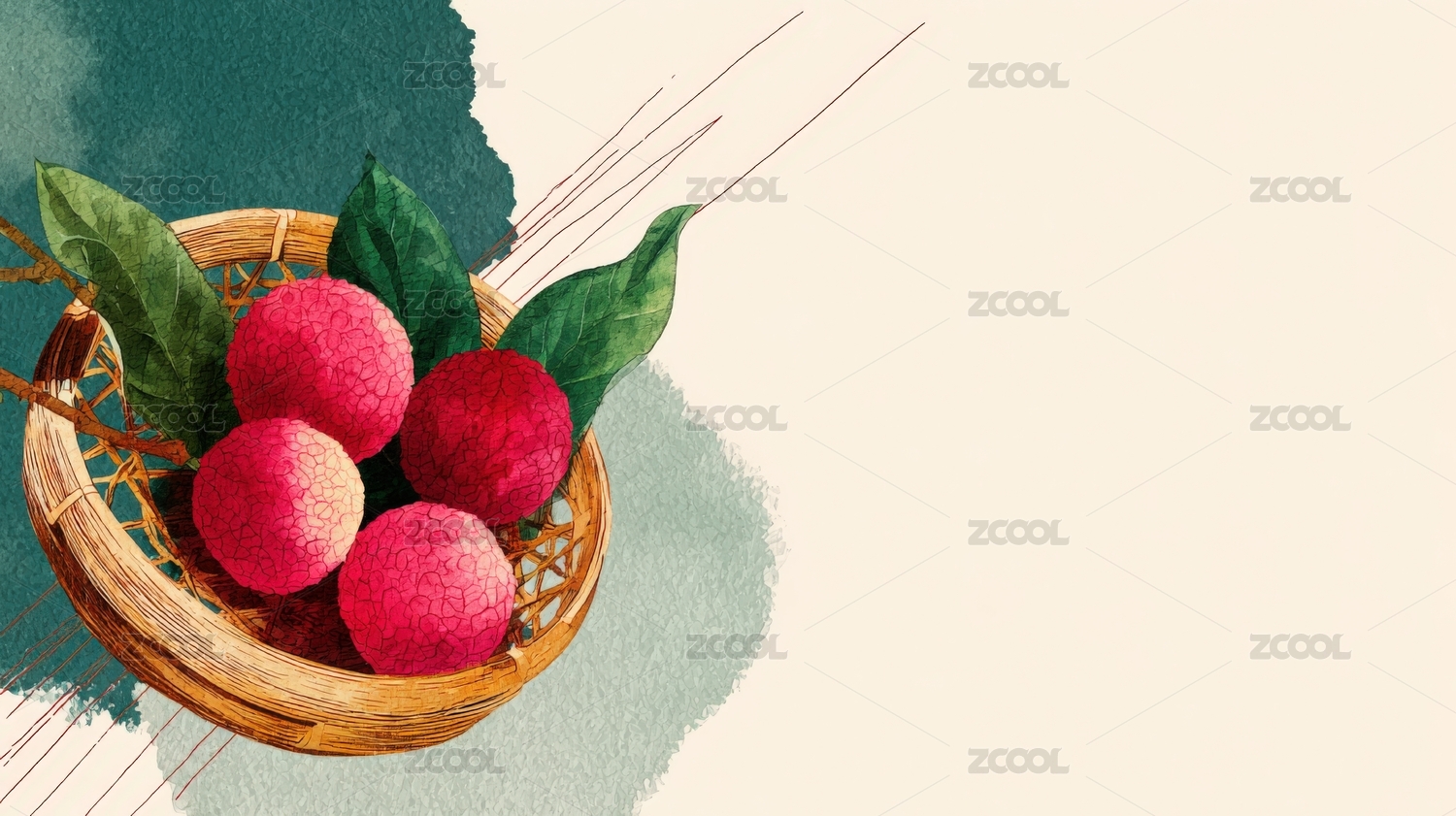 手绘荔枝果篮田园风