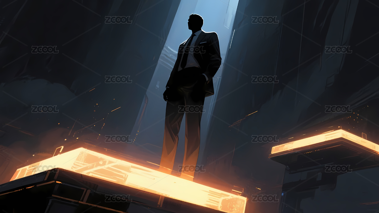 背景,结构,科幻,未来,灯光,金属,西装,男子,橙黄,氛围