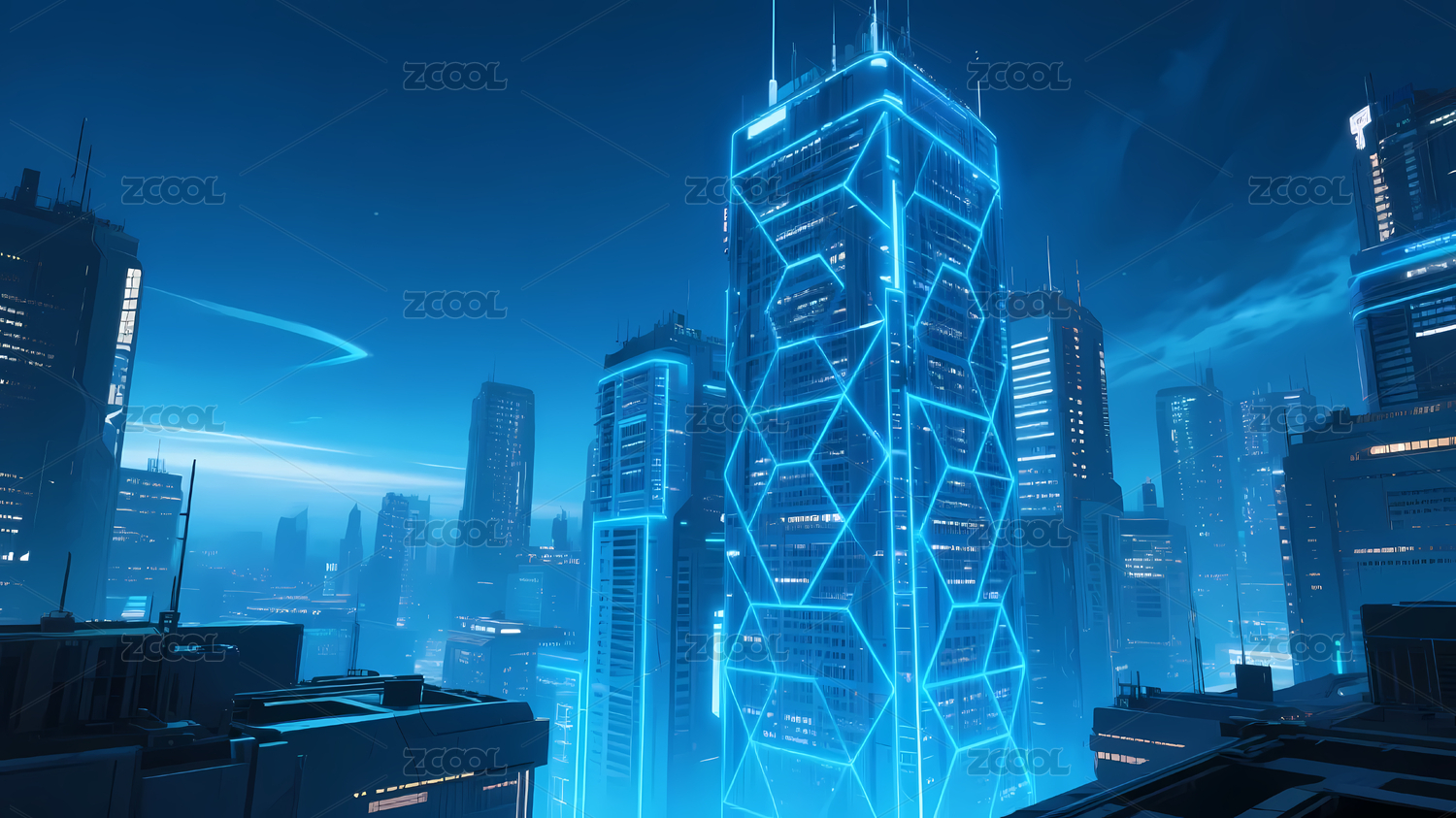 幽暗的现代极简商务办公大厅霓虹幕墙海报