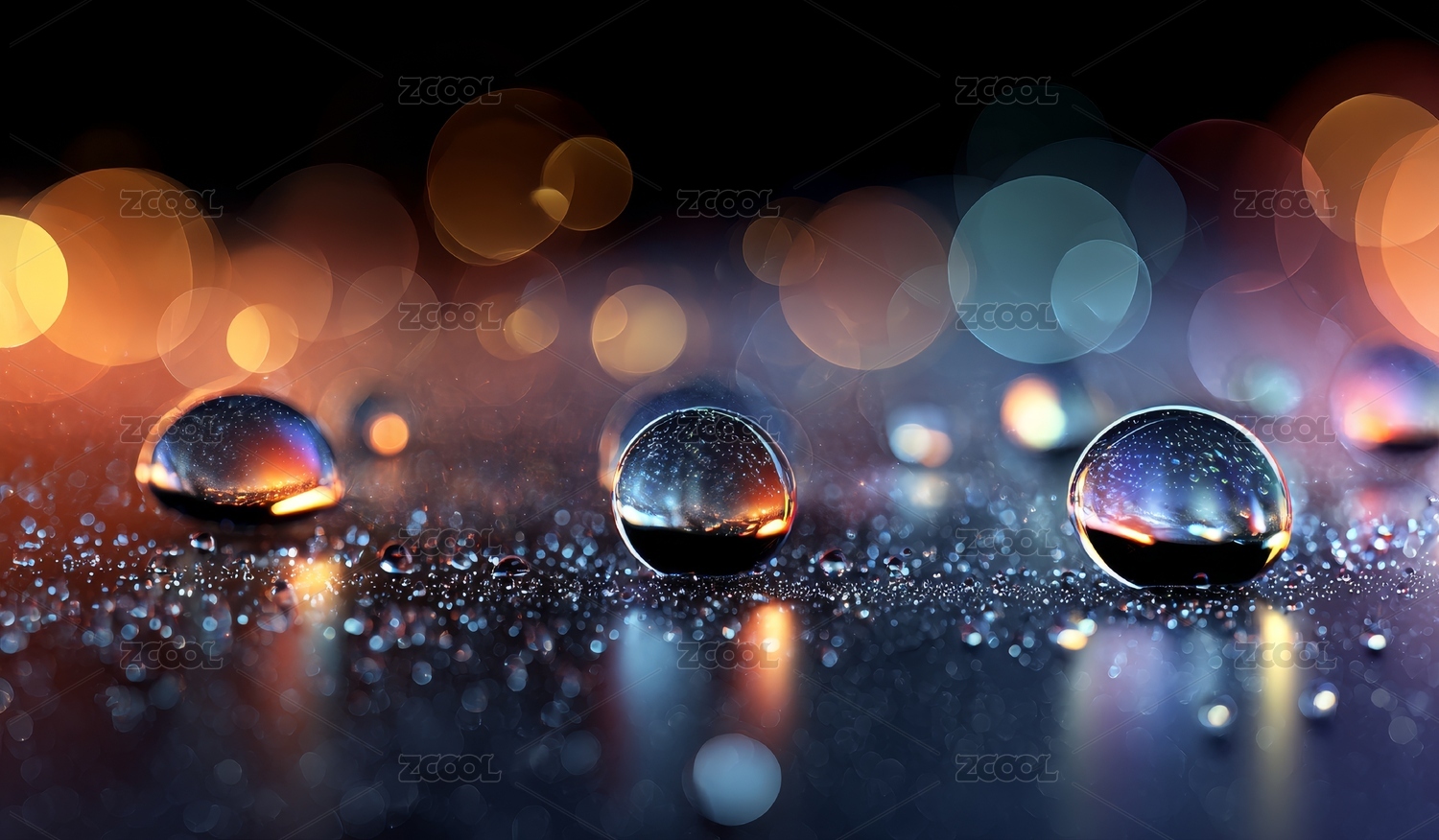 渐变色彩,水滴,晶莹,特写,紫色,橙色,彩虹,绚丽,大小不一,形态各异