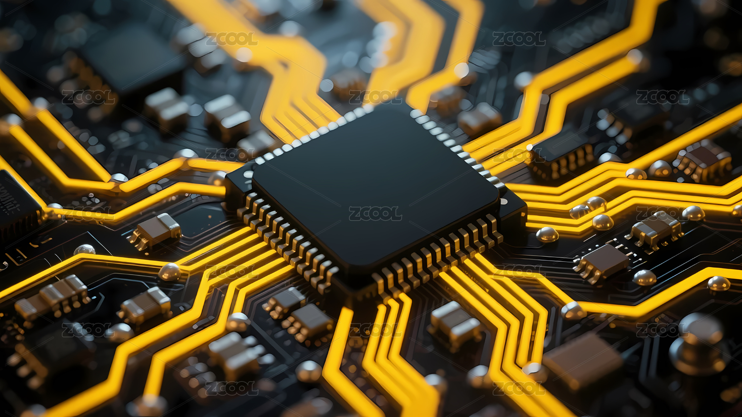 背景,蓝色,金色,黑色,连接线,芯片,电路板,元件,引脚,点状