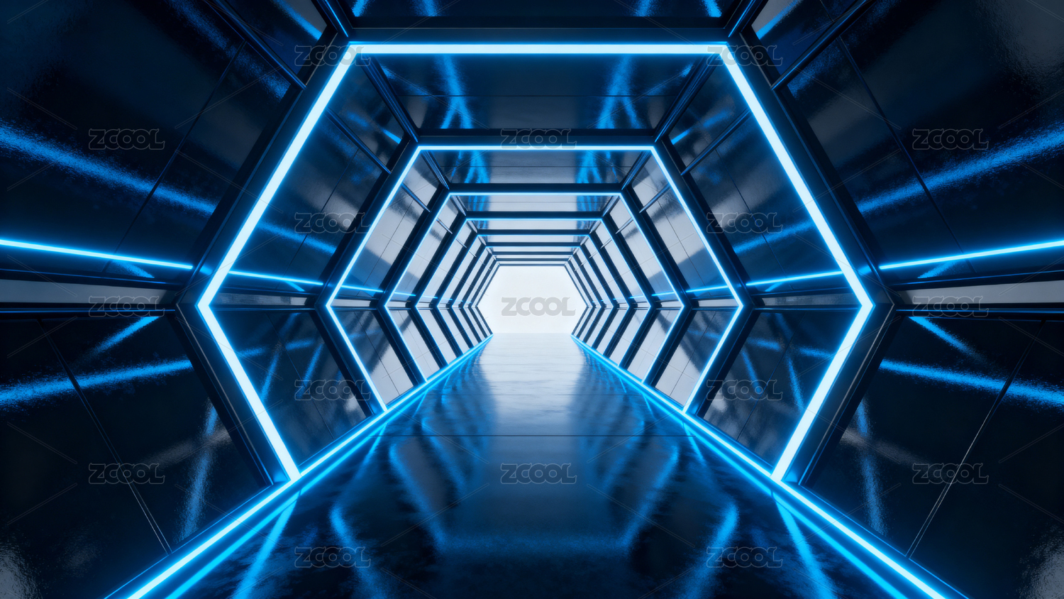 背景,蓝色,未来,主体,霓虹灯,隧道,灰色,石砖,墙面,冷色